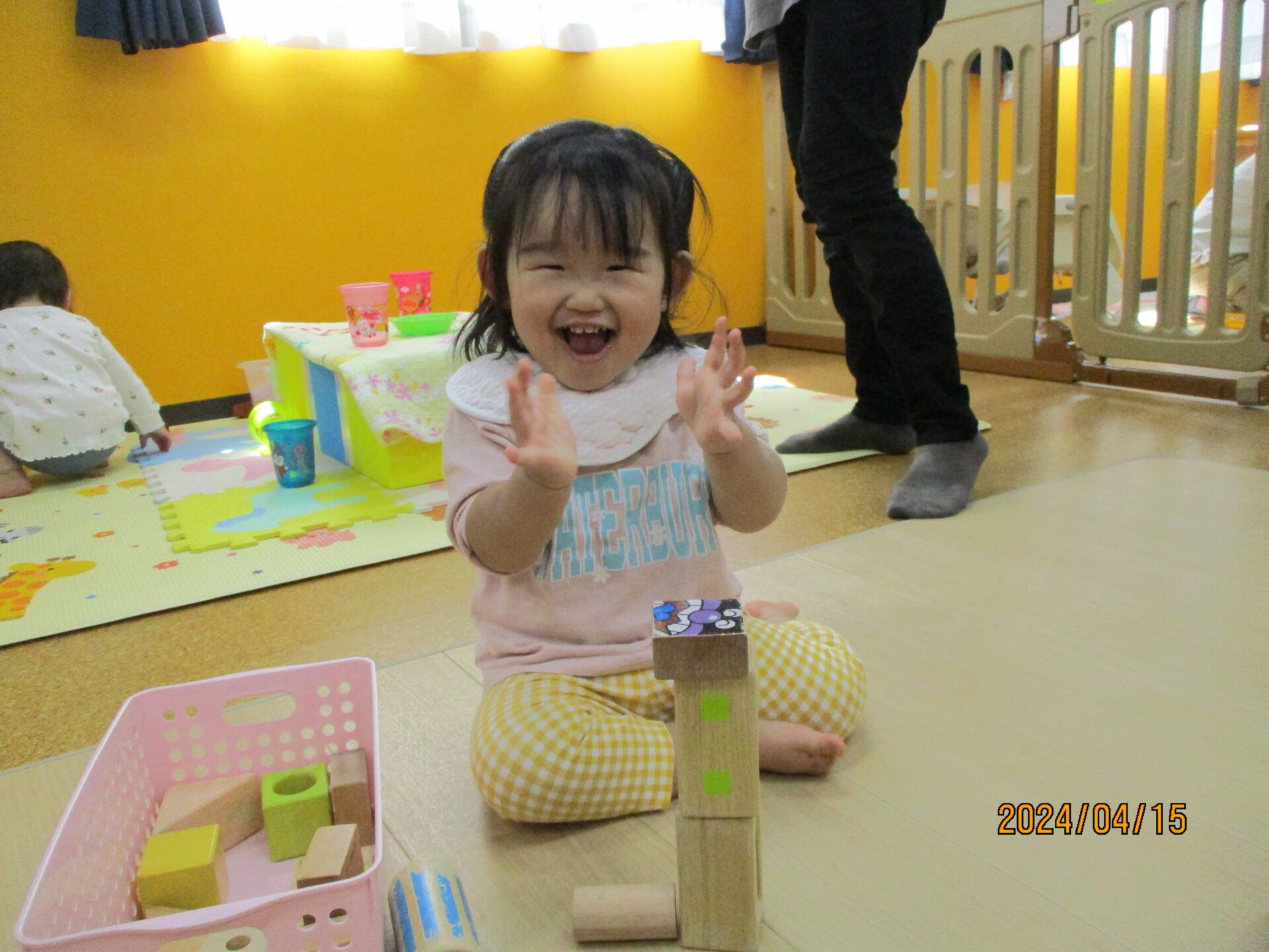 積み木を高く積めてうれしそうです💓