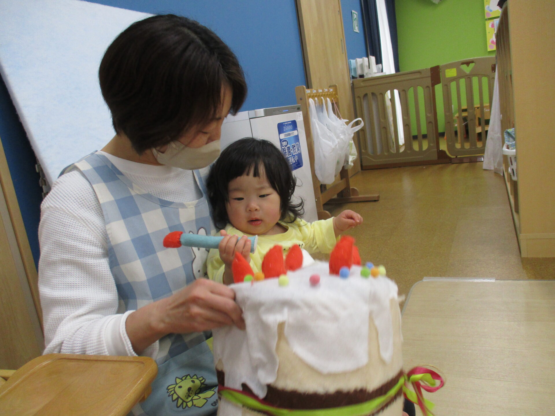 布製のケーキに興味津々です💓