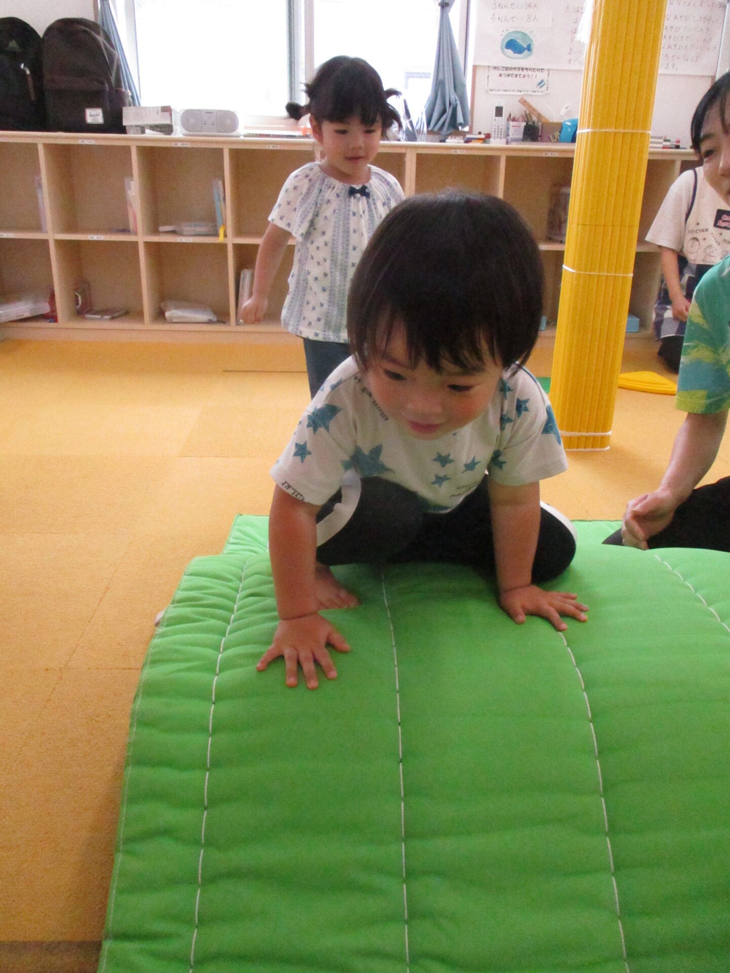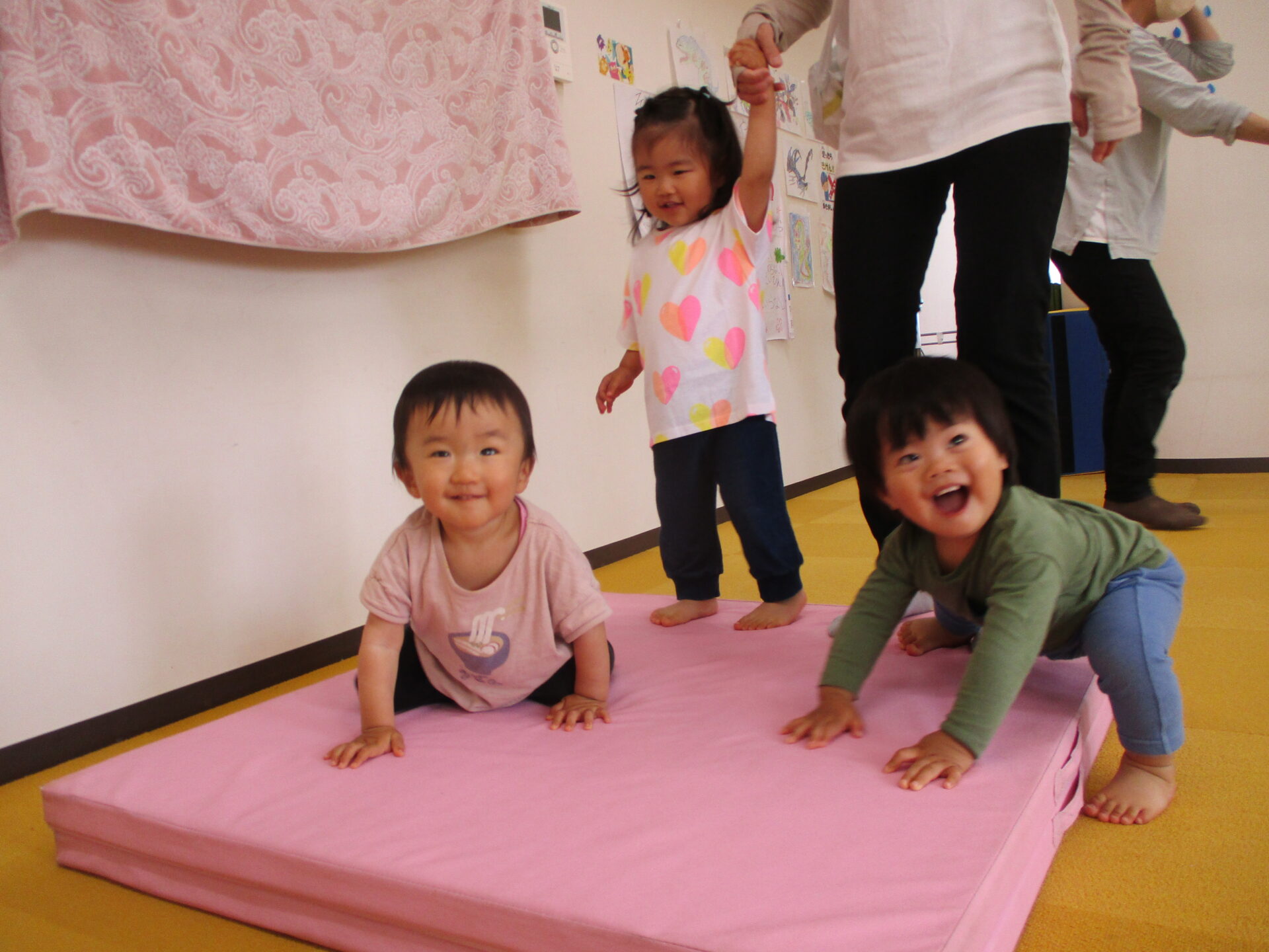 よいしょよいしょ💕マットの山を登ります!!