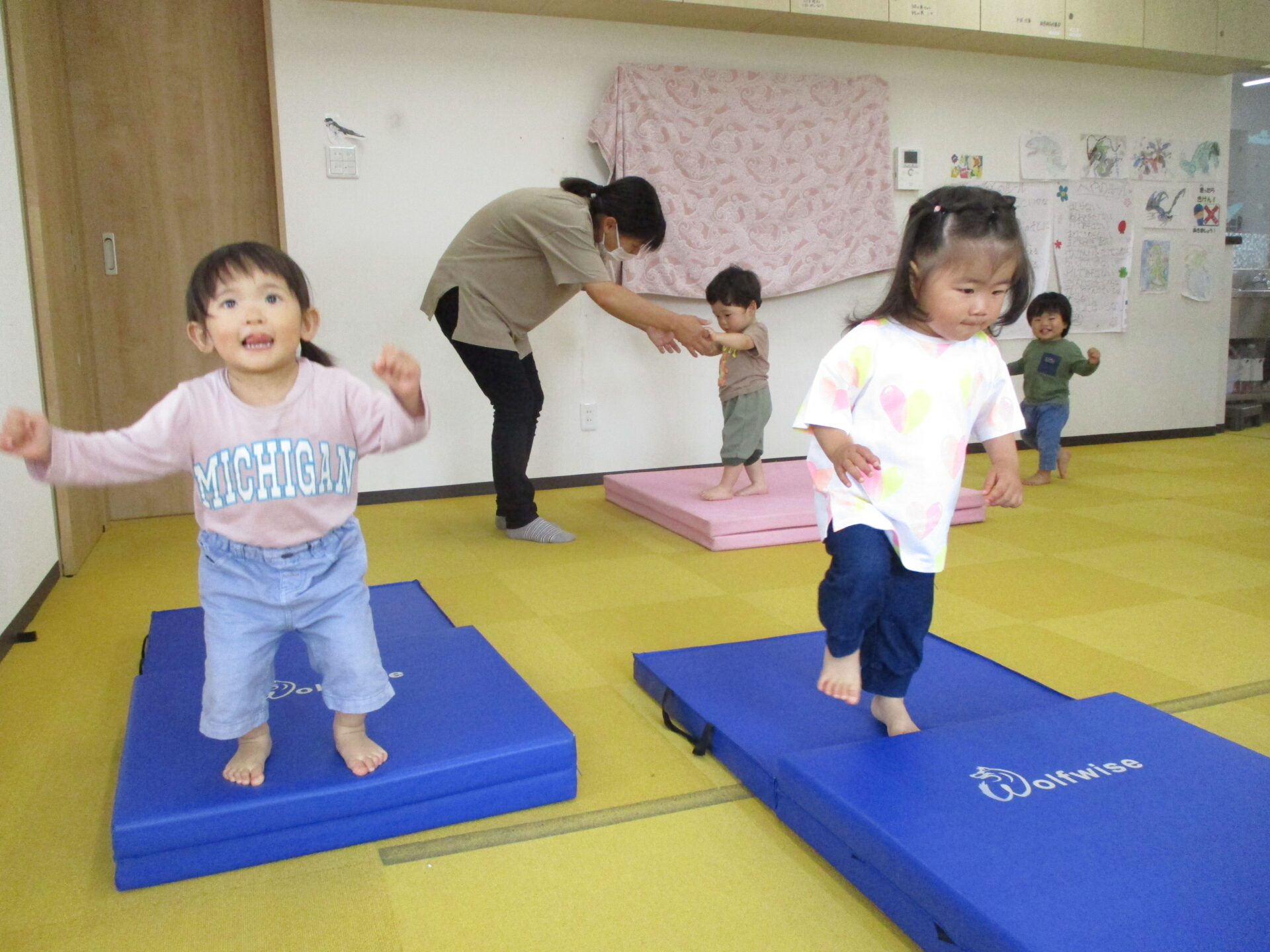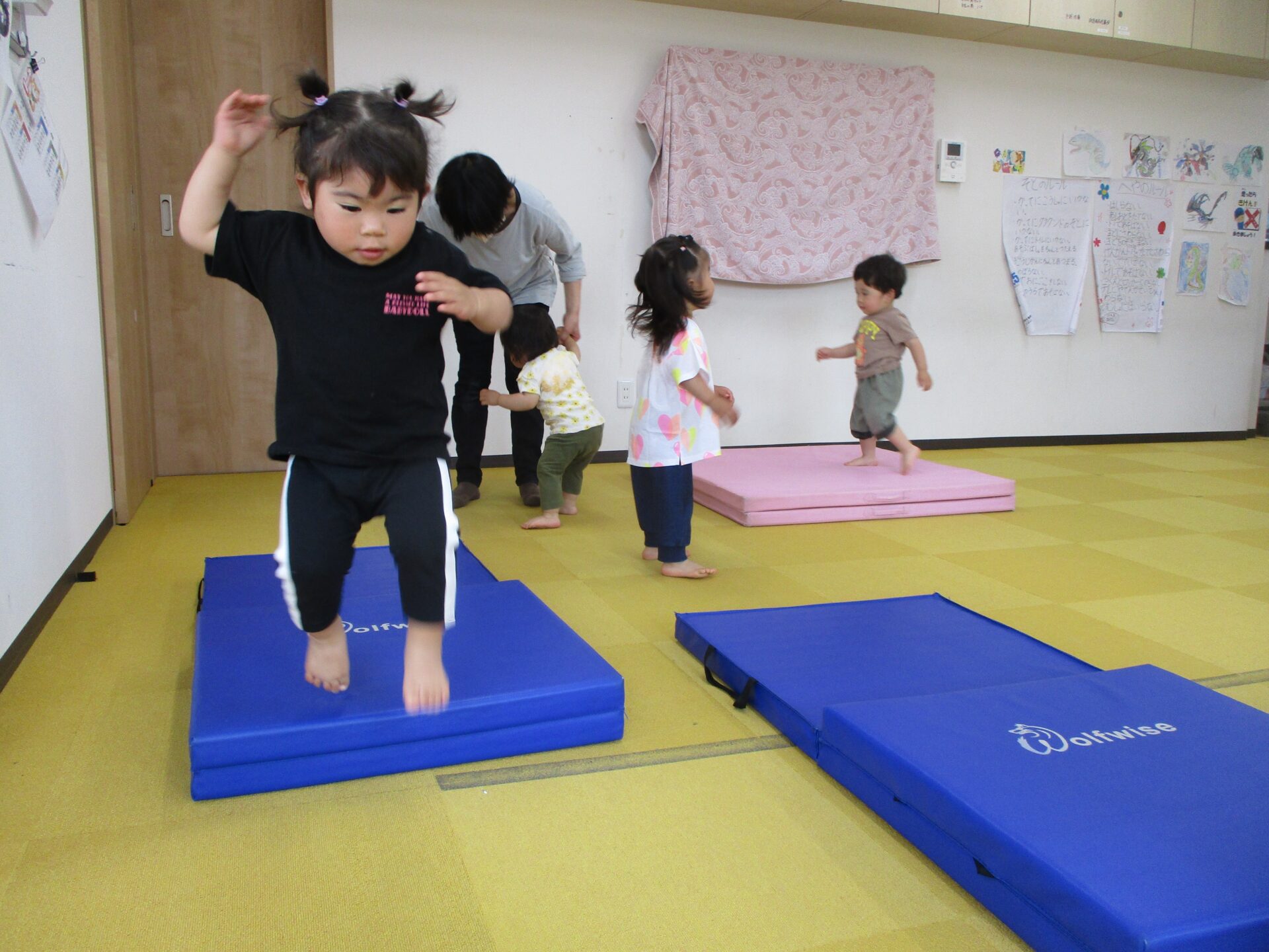 昨年度から様々な運動あそびを経験してきたあめチームのみんな(⌒∇⌒)自信を持って、大ジャンプにも挑戦です💕