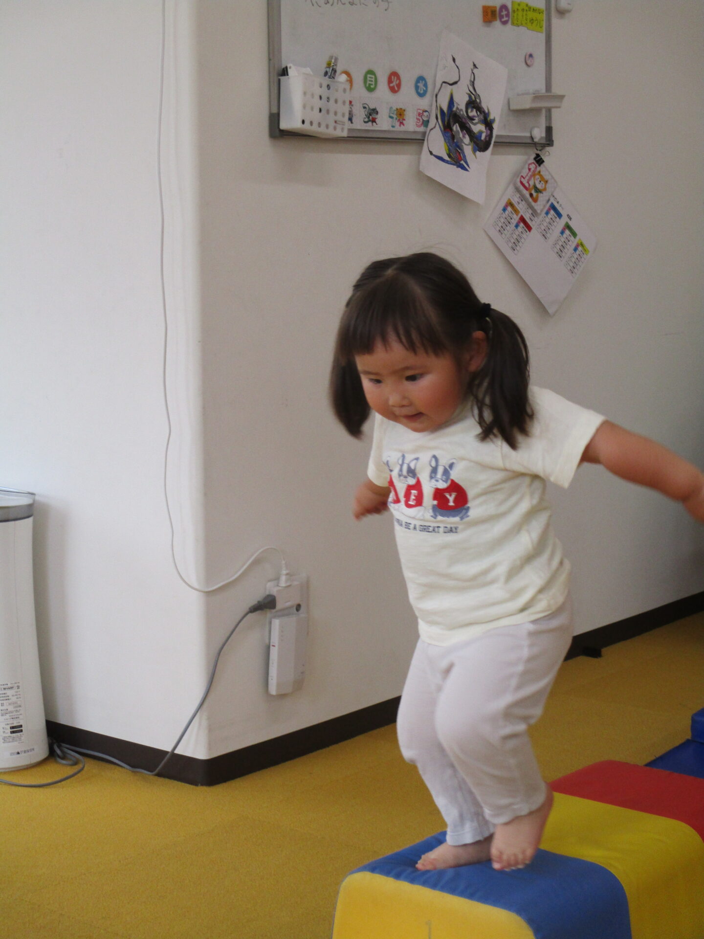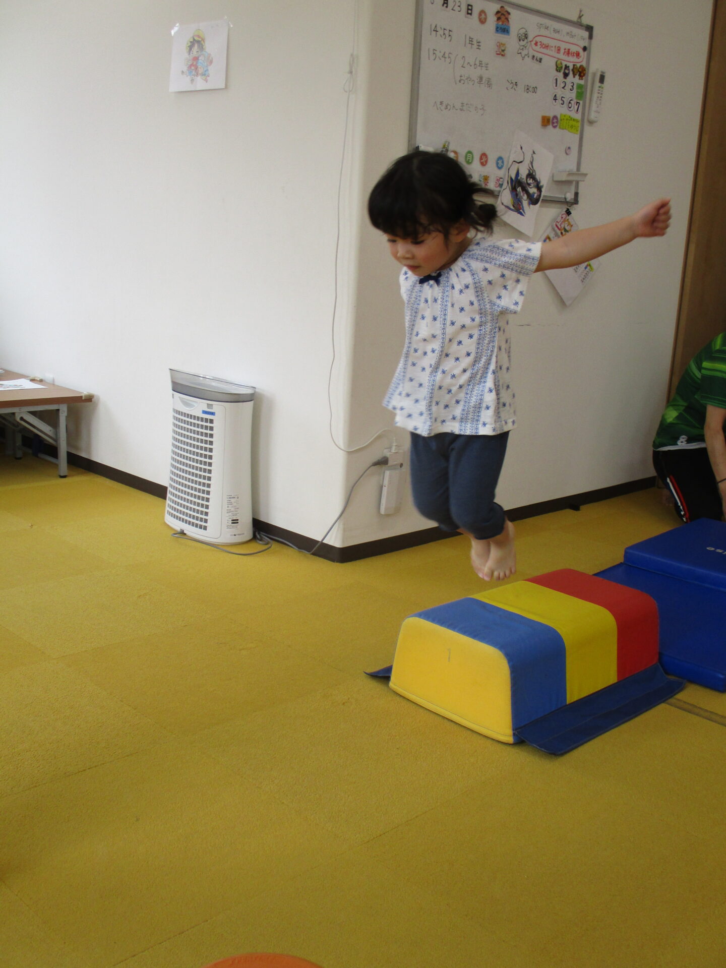 高さのあるマットの上からジャンプに挑戦!!真剣な表情です🥰