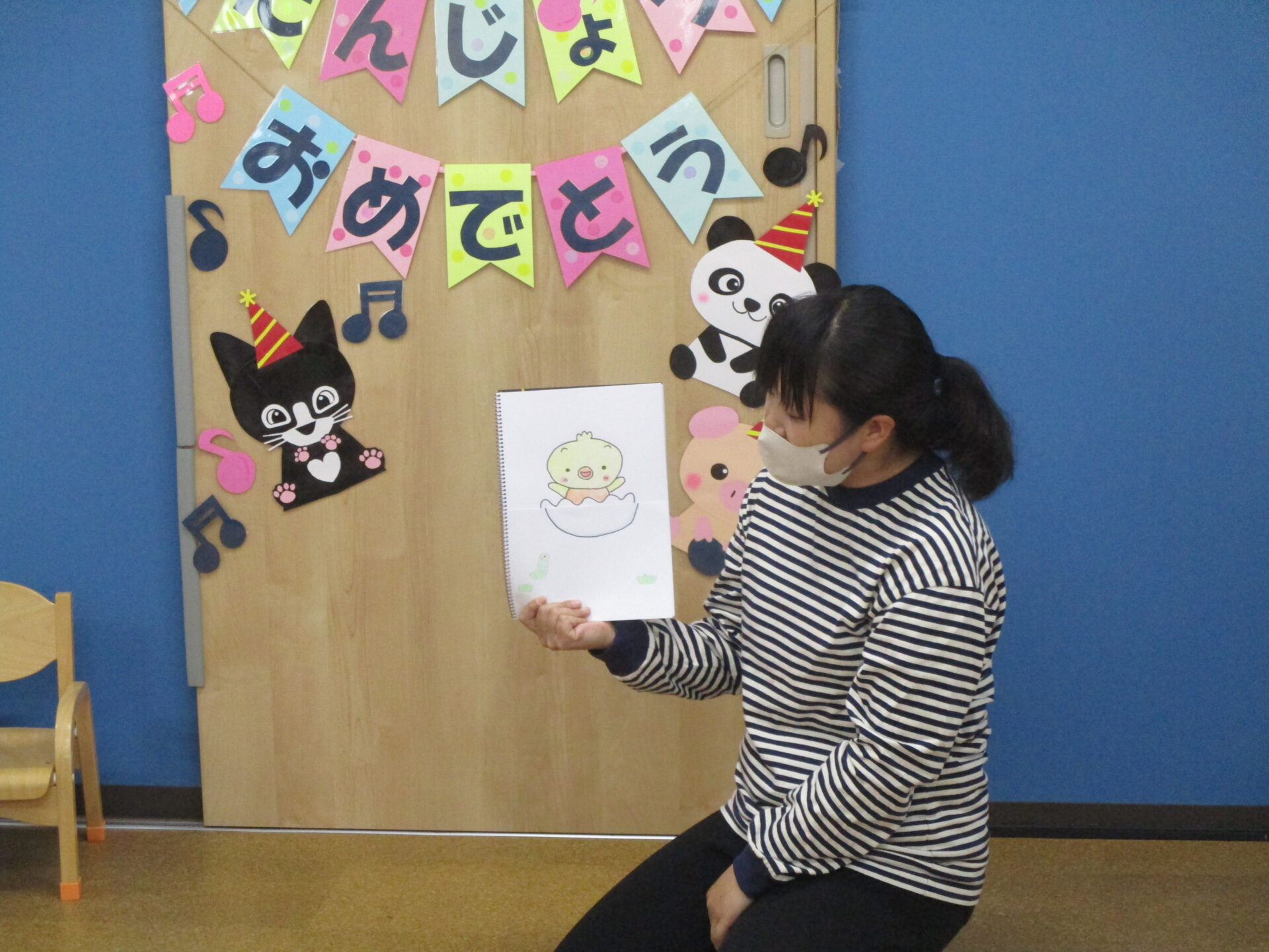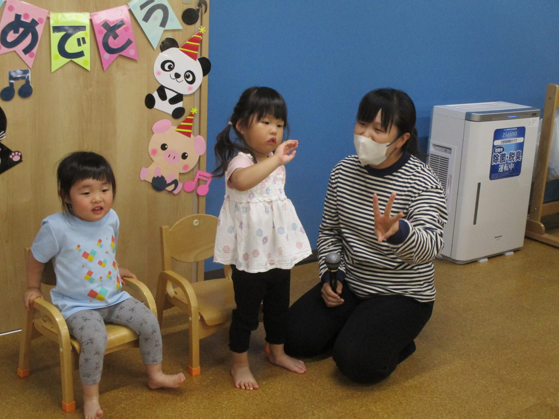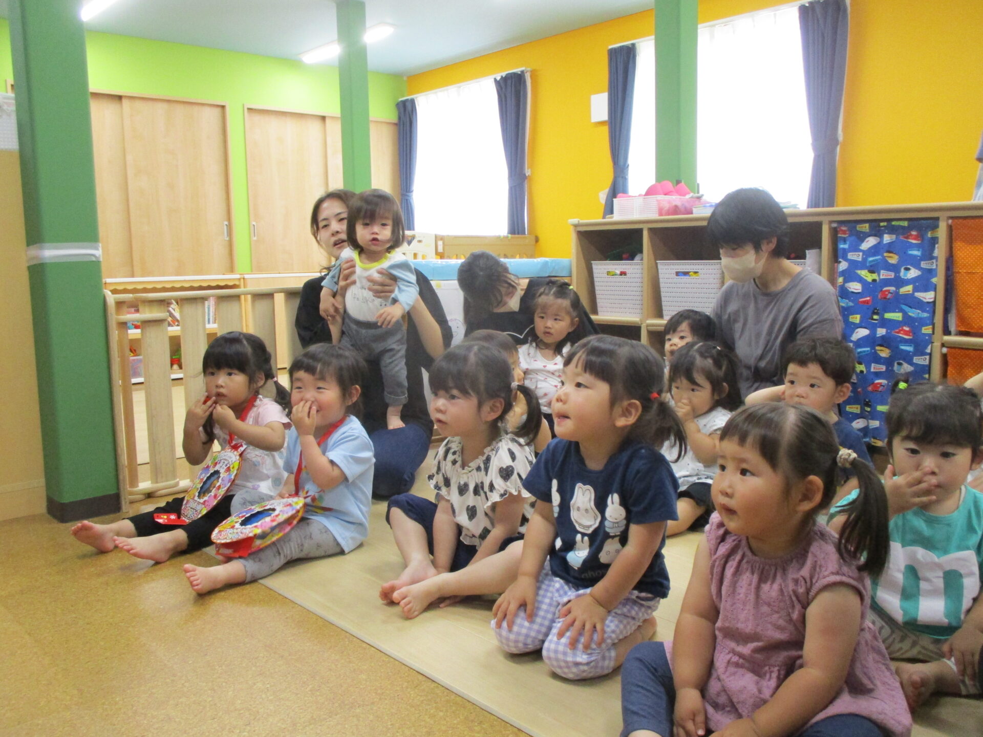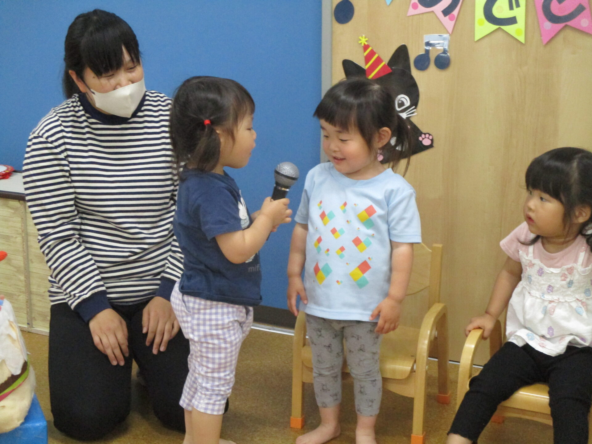 5月生まれのお友だちは、1歳児だいちチームの女の子一人と、2歳児あめチームの女の子二人です💕