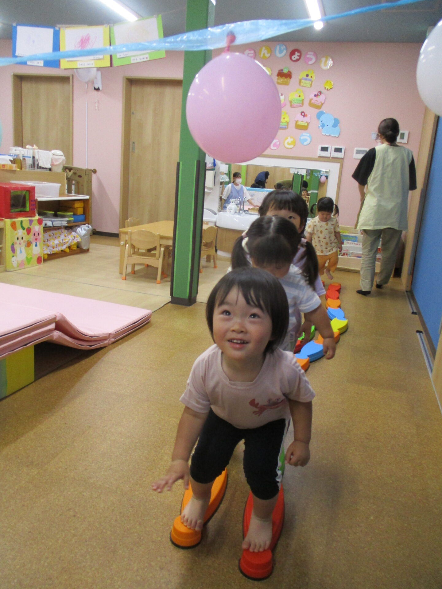 一本橋でも遊びました(⌒∇⌒)落ちないよう渡ったら、最後は風船にタッチ!!