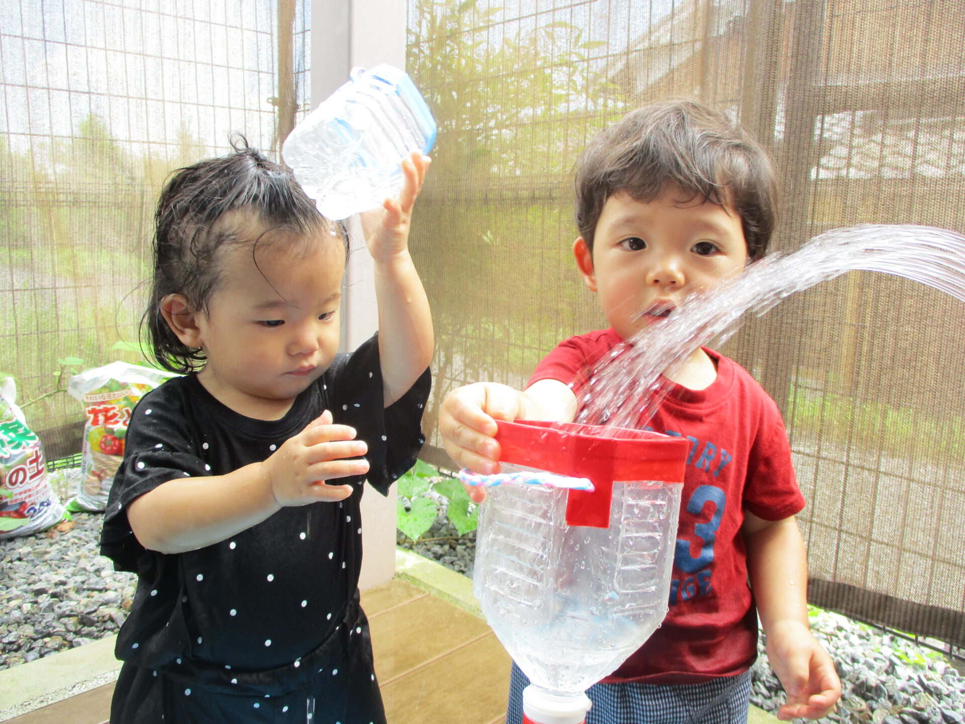 水遊び大すき🥰水に濡れてもへっちゃら!ダイナミックに遊んでいます!!