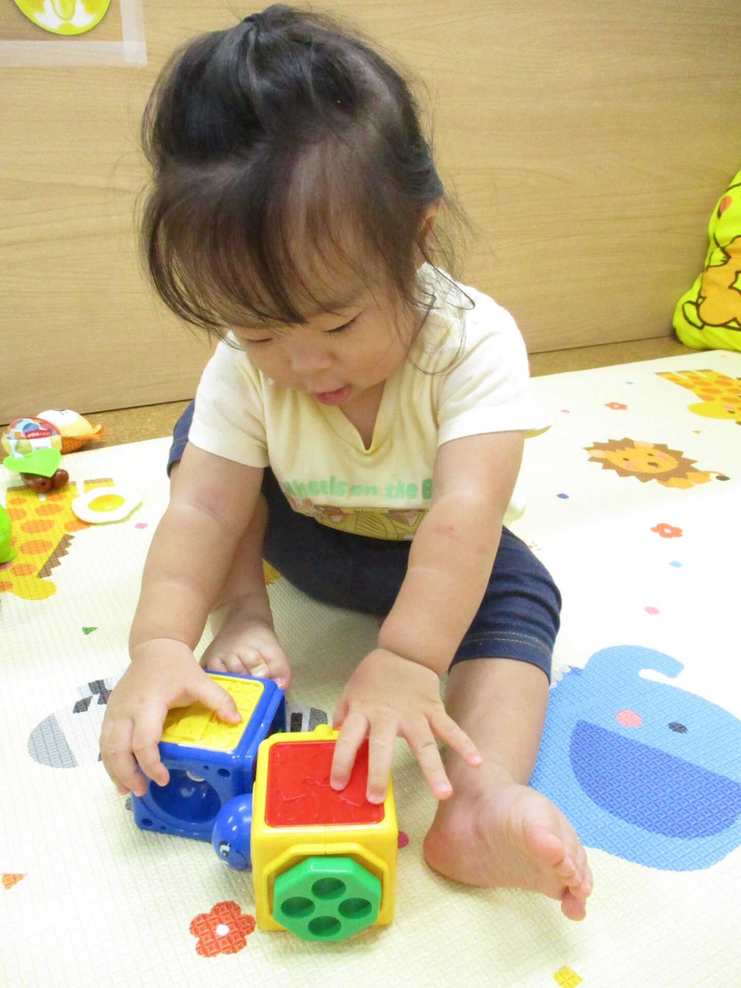 室内では、好きな玩具で集中して遊んだり、保育者と、ふれあい遊びで楽しく体を動かして過ごしています✨