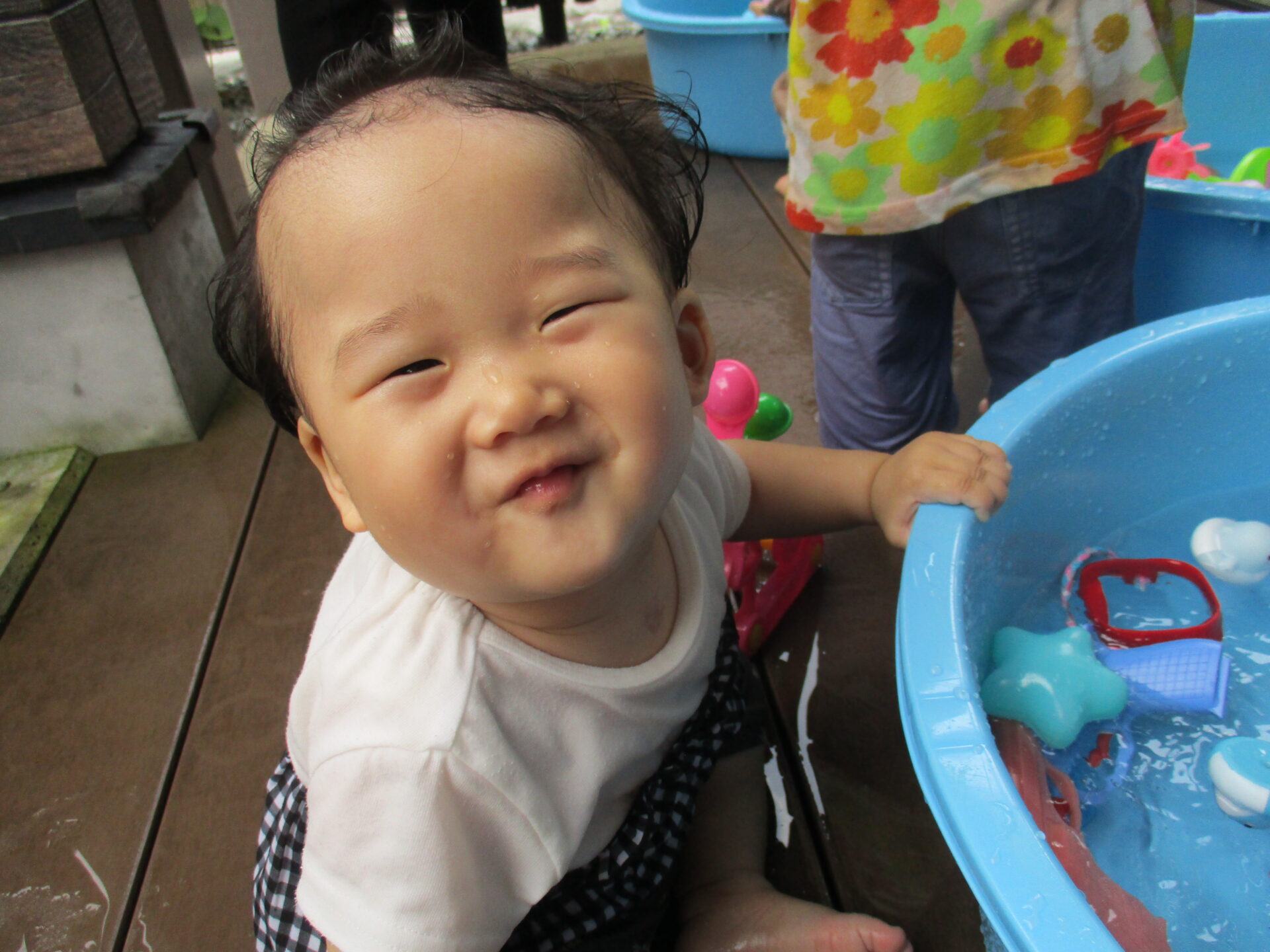 ダライの水をパシャパシャして、にっこり笑顔💕
