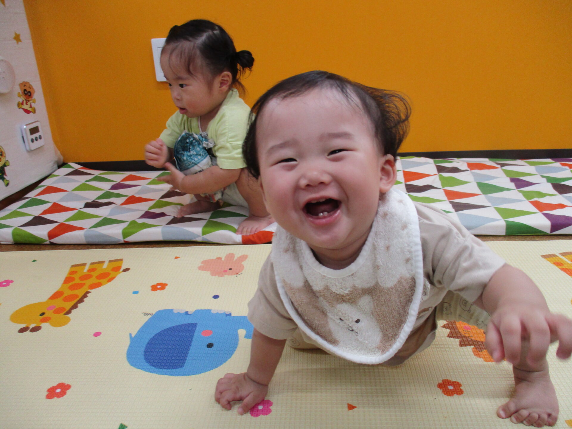 「まてまて~」と、ハイハイで追いかけっこ⤴⤴