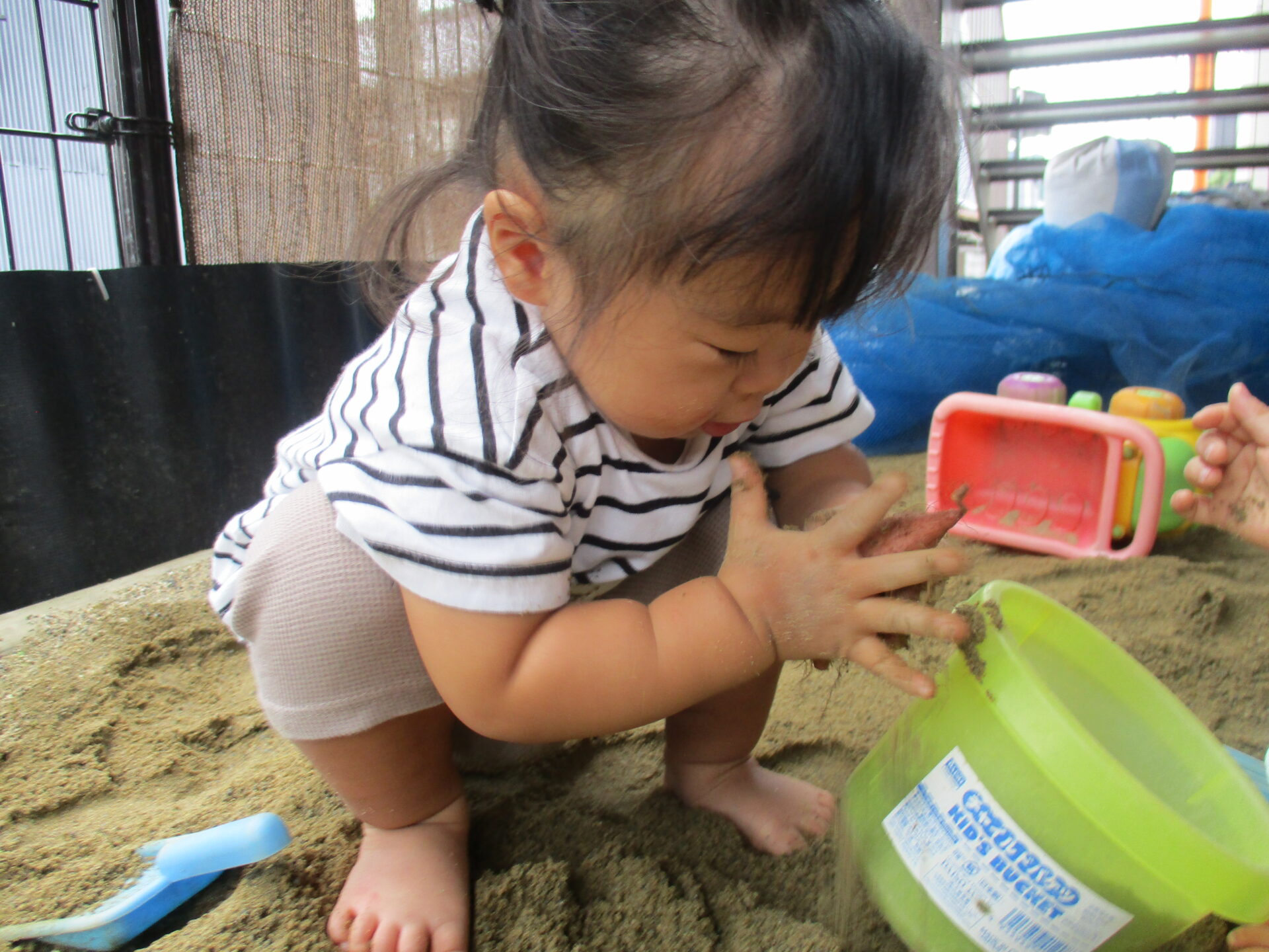 お芋や土に触れることに抵抗があったため、慣れた砂場で”おいも掘りごっこ”を楽しみました🥰