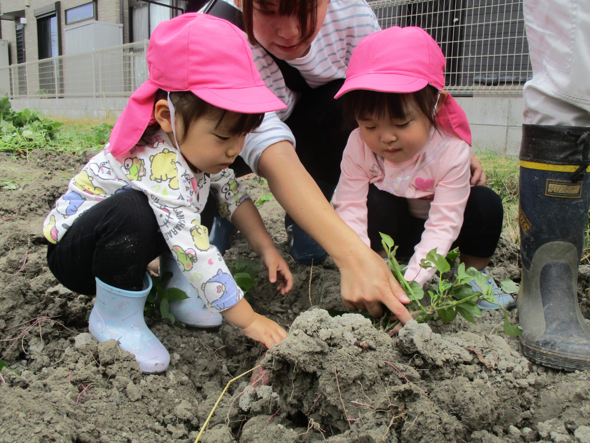 6月の苗付けの時には、まだ歩行がおぼつかず歩けなかったでこぼこ道も、しっかり歩いて畑の畝まで入ることができました✨土を触ることに抵抗を感じる子もなく、みんなでさつまいも掘りを楽しむことができました🍠💕