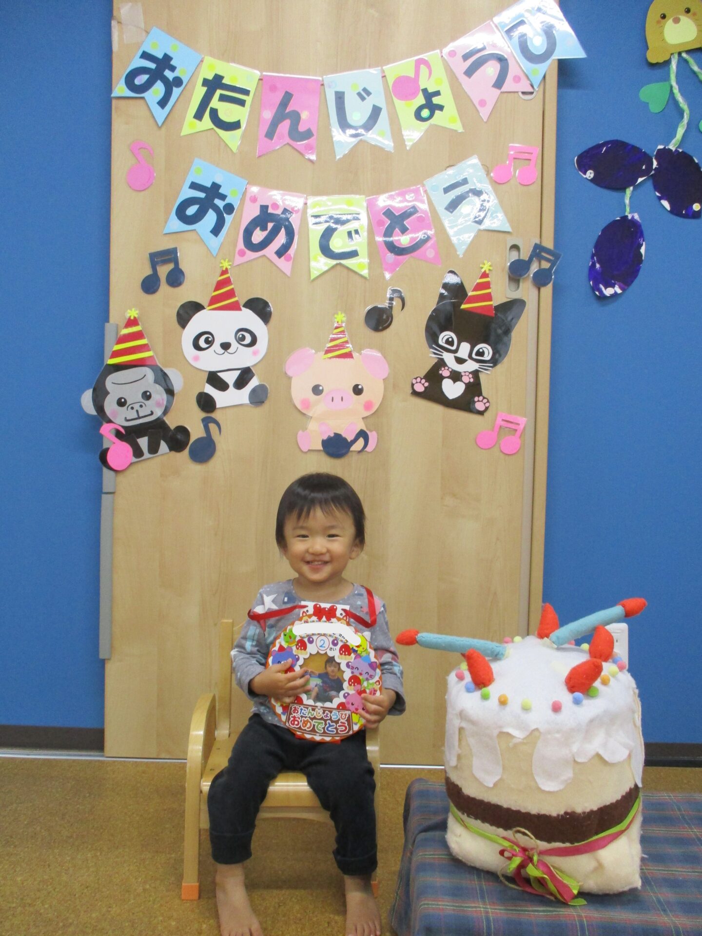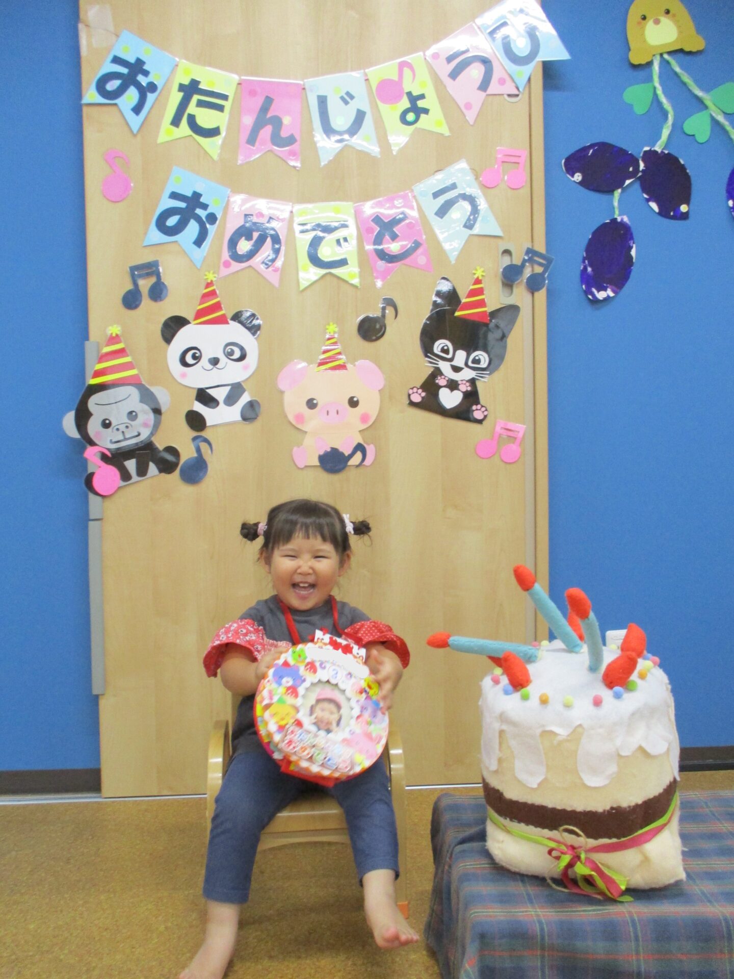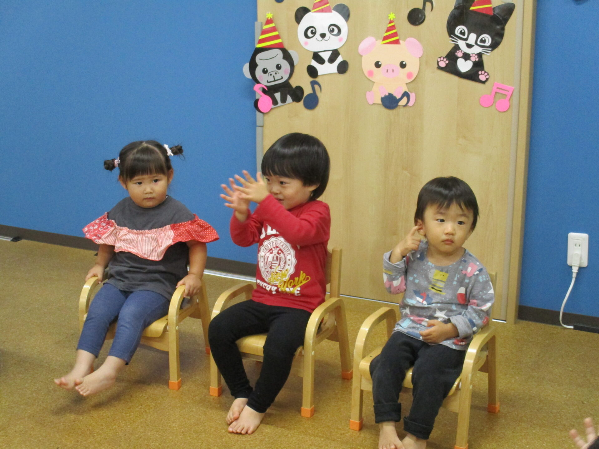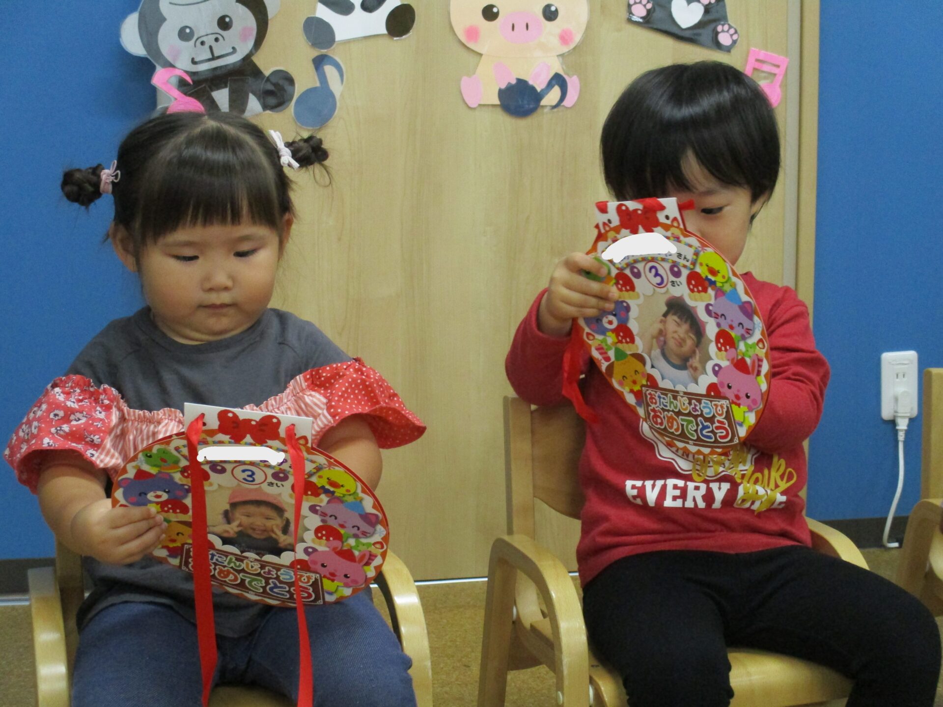 1歳児だいちチームの男の子と、2歳児あめチームの男の子・女の子です🎊