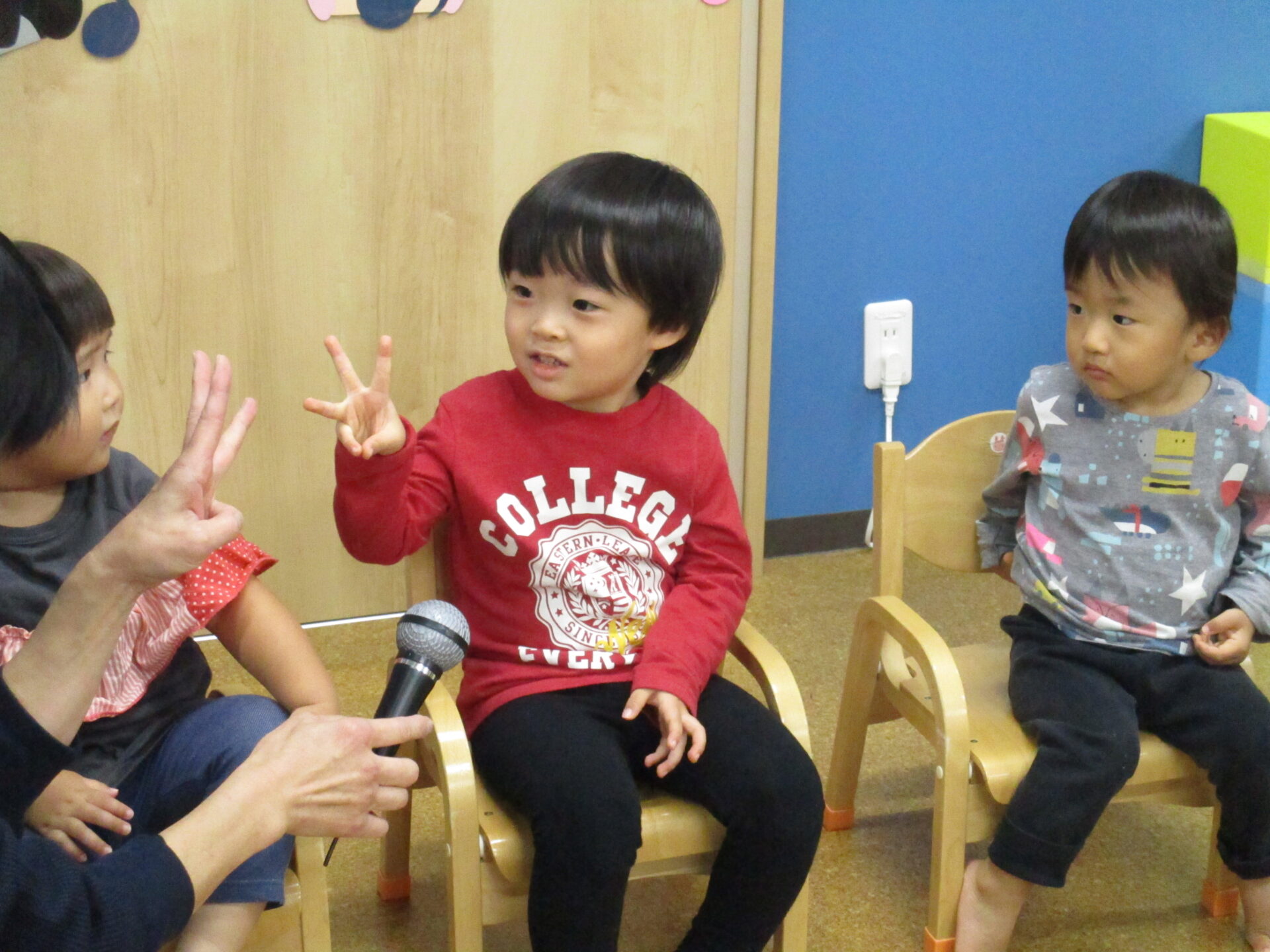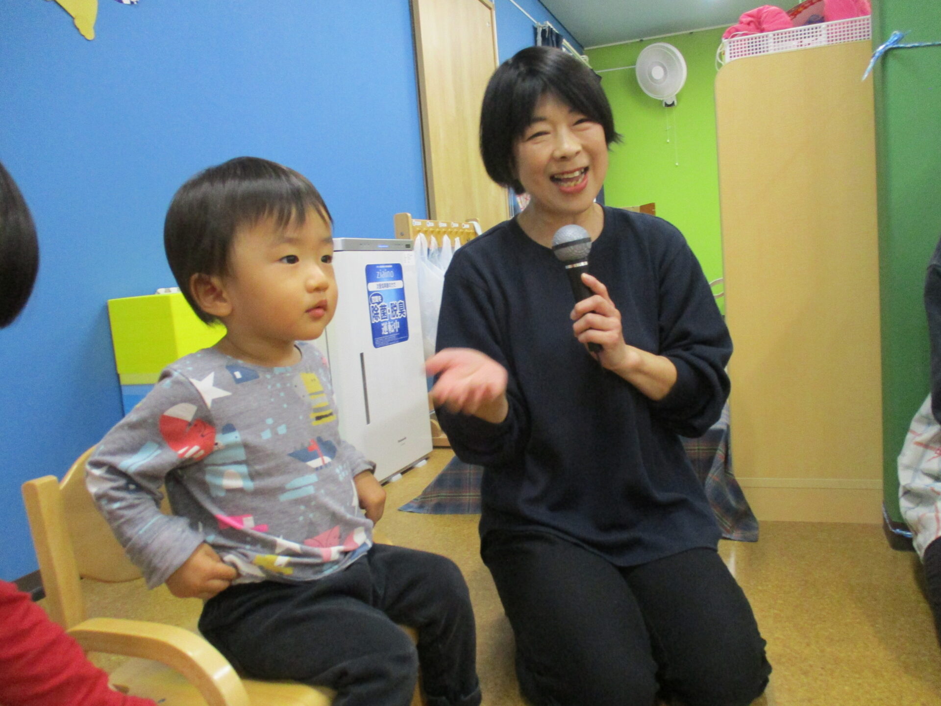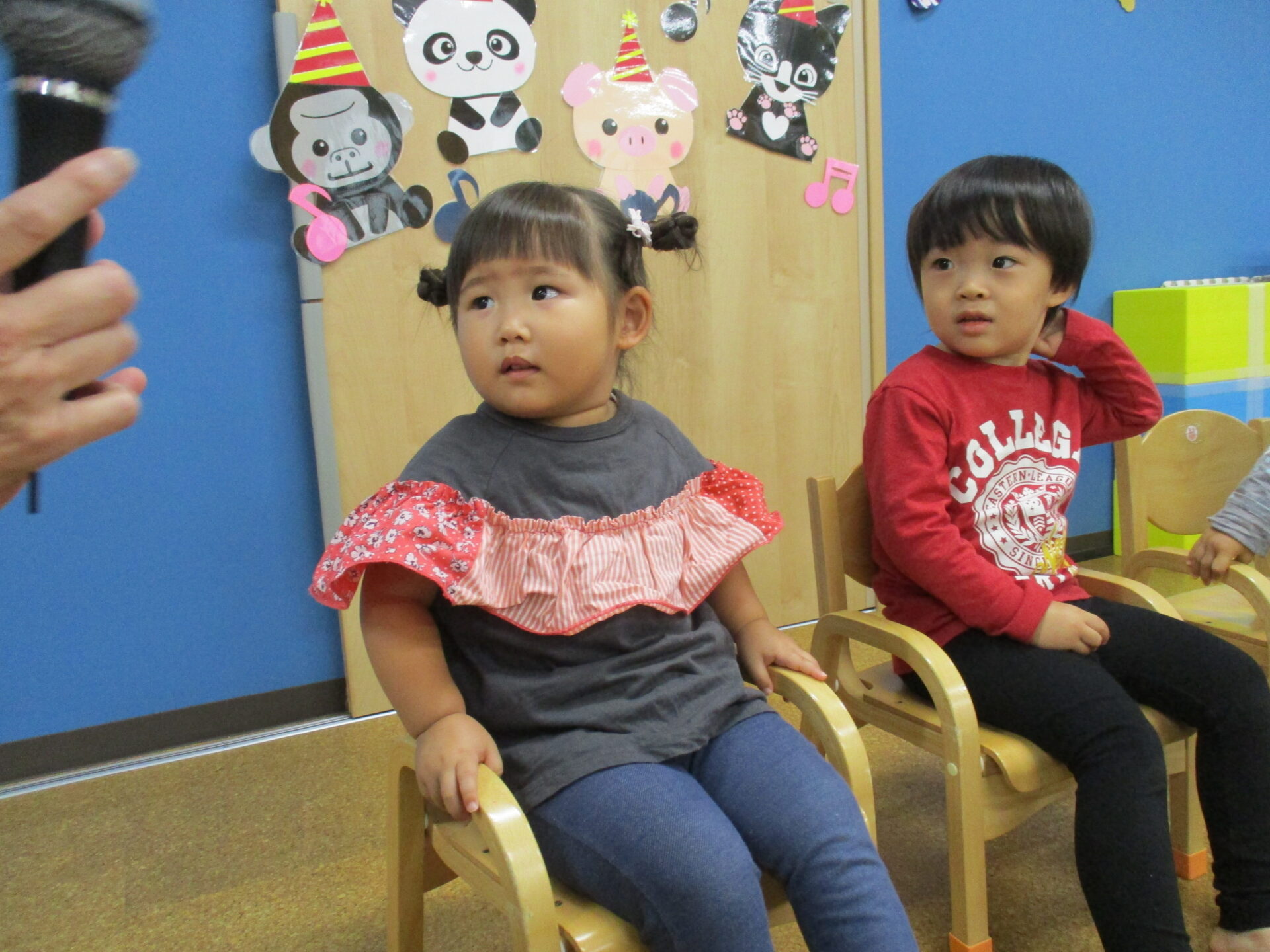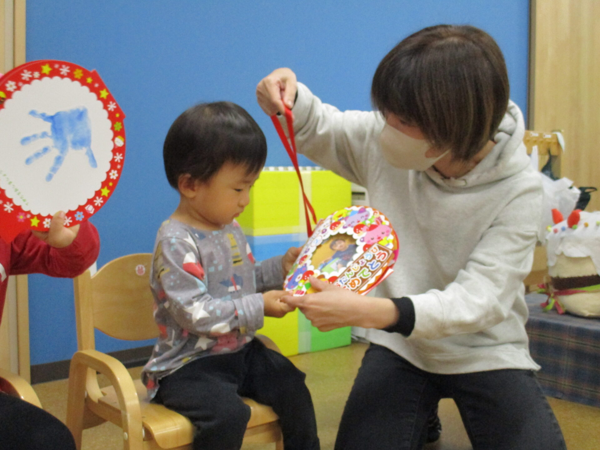 1歳児だいちチームの男の子と、2歳児あめチームの男の子・女の子です🎊