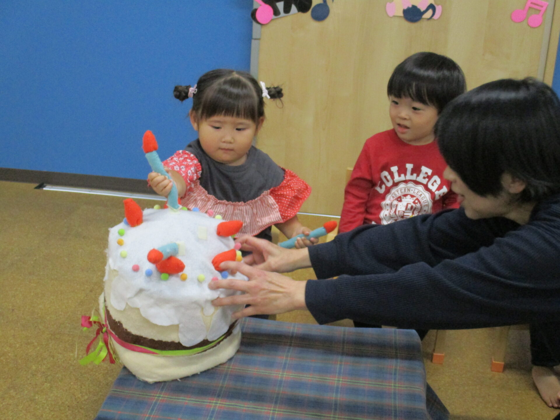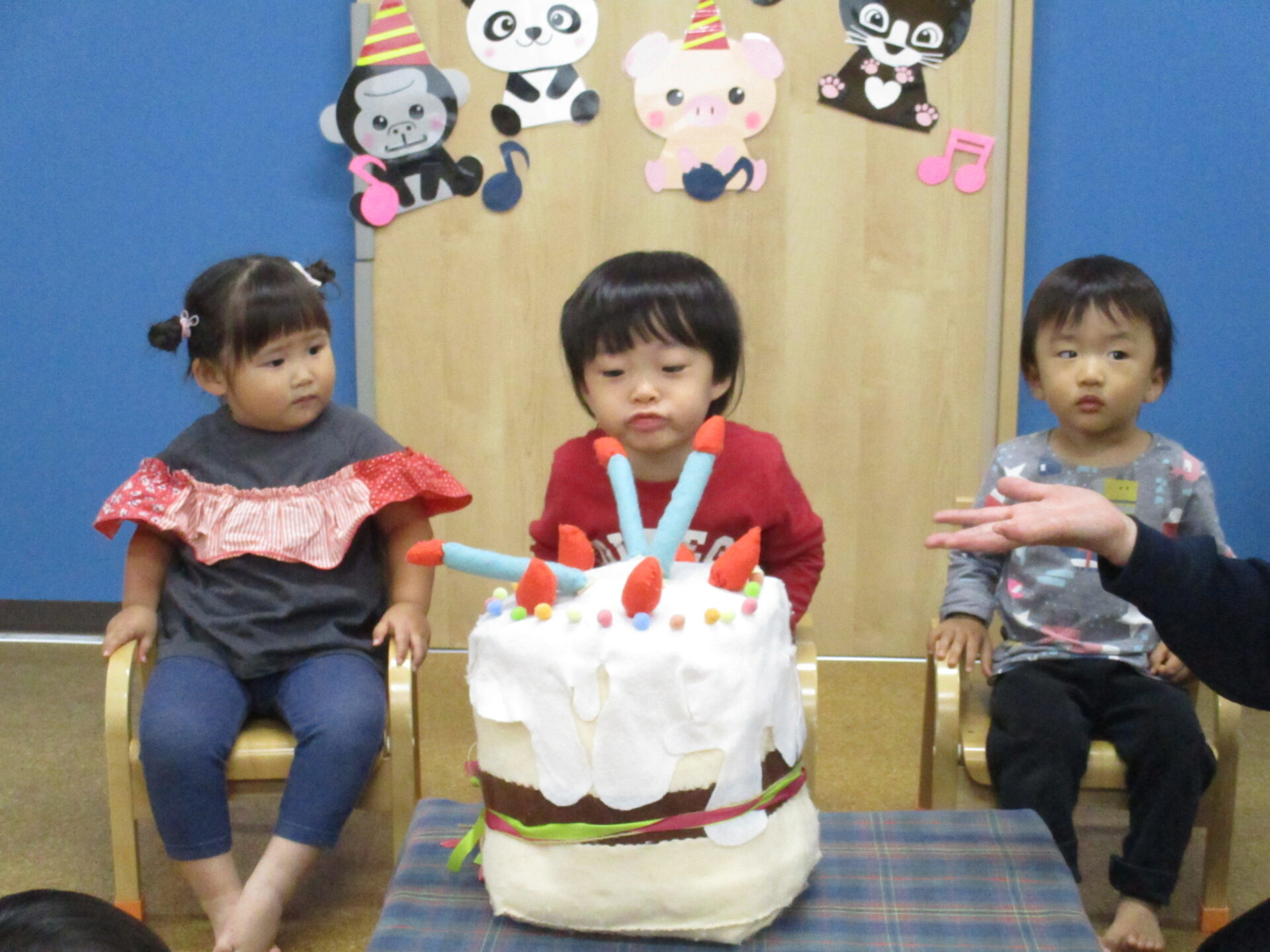 保育者と一緒にろうそくを吹きます(⌒∇⌒)💕