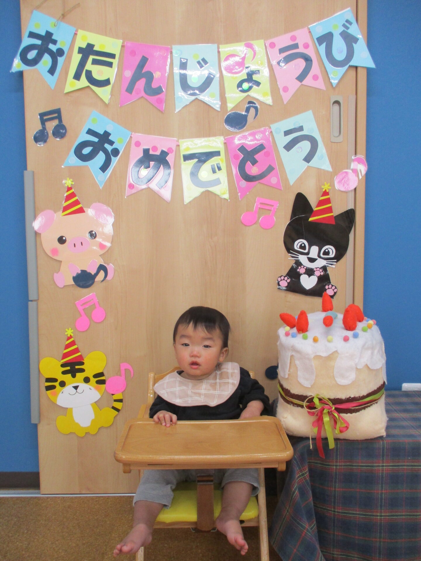保育者と一緒にフ~!!と、ろうそくを消しました(⌒∇⌒)おめでとーう💕