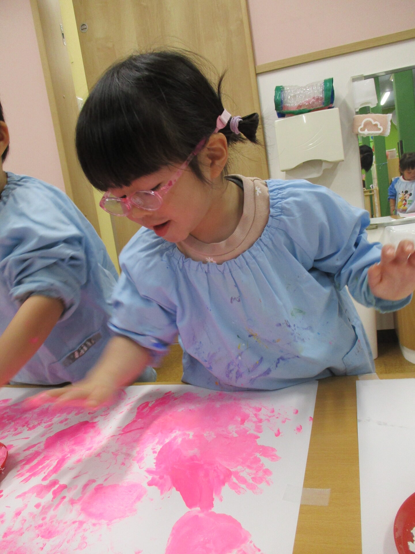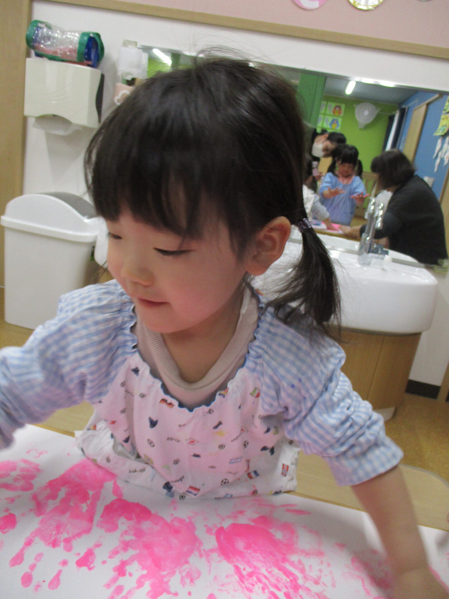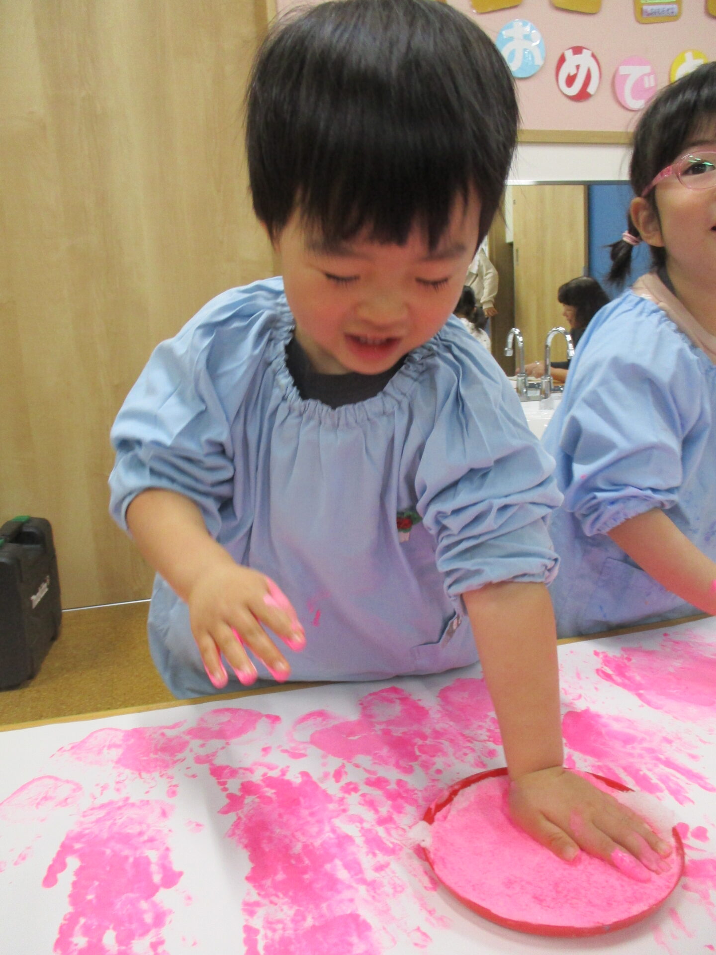 ダイナミック!!ハンドスタンプに挑戦(^▽^)/(2歳児あめチーム)
