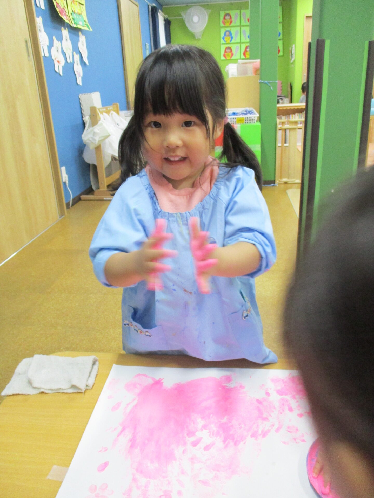 いい表情で、たくさんの手形をつけていました(⌒∇⌒)💕楽しいね🎵