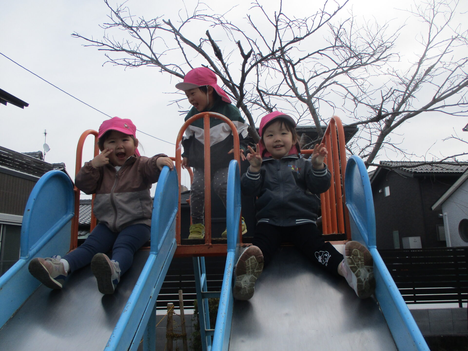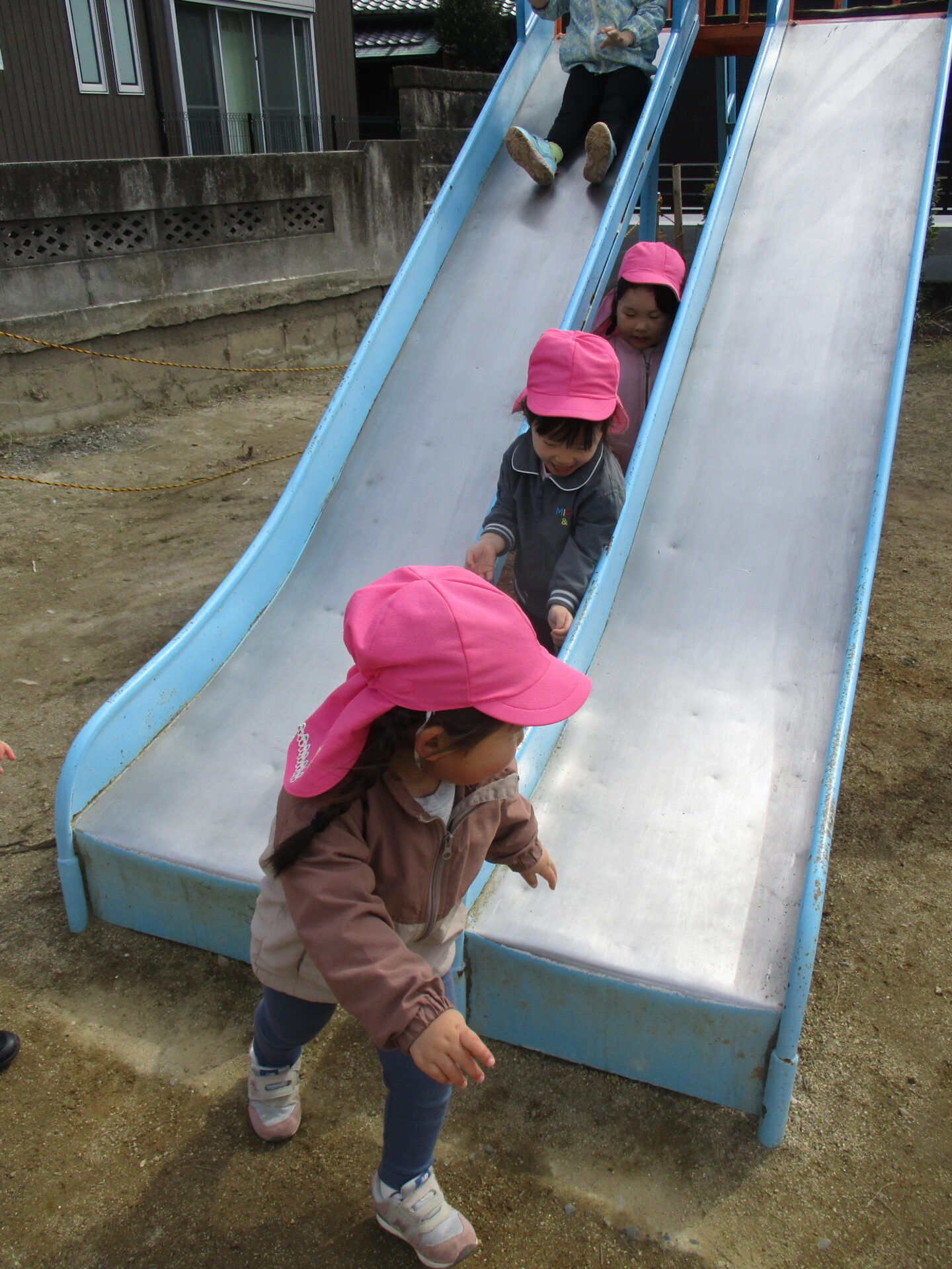 すべり台の間の隙間の面白さに気づき、ケラケラと笑いながらみんなで通っていました🥰