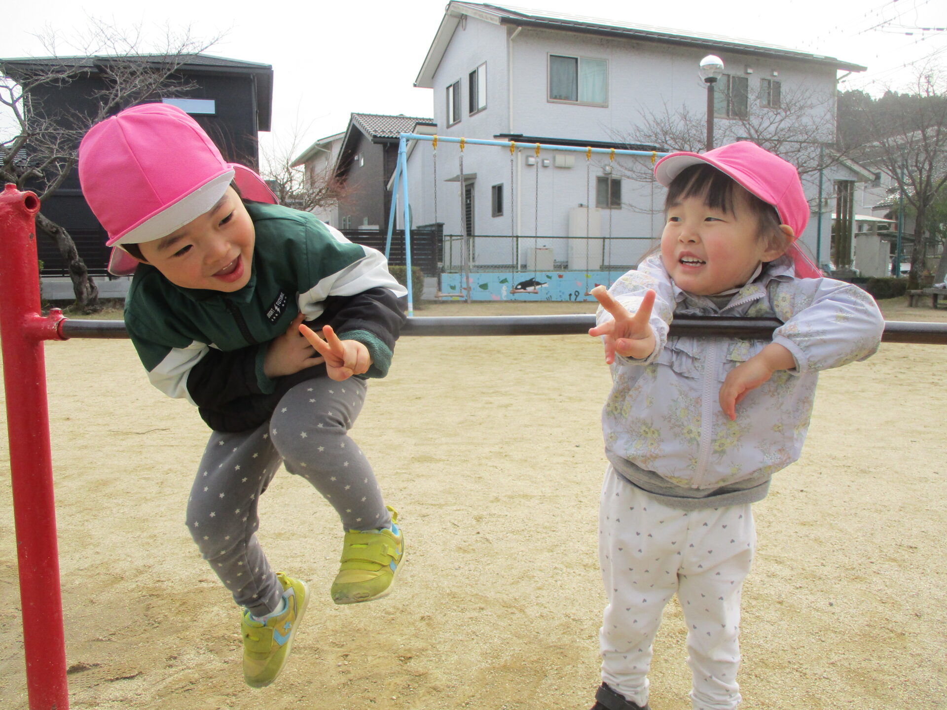 鉄棒に挑戦✨「見ててね!」と、ぶらさがったり、よじのぼったりしていました(⌒∇⌒)