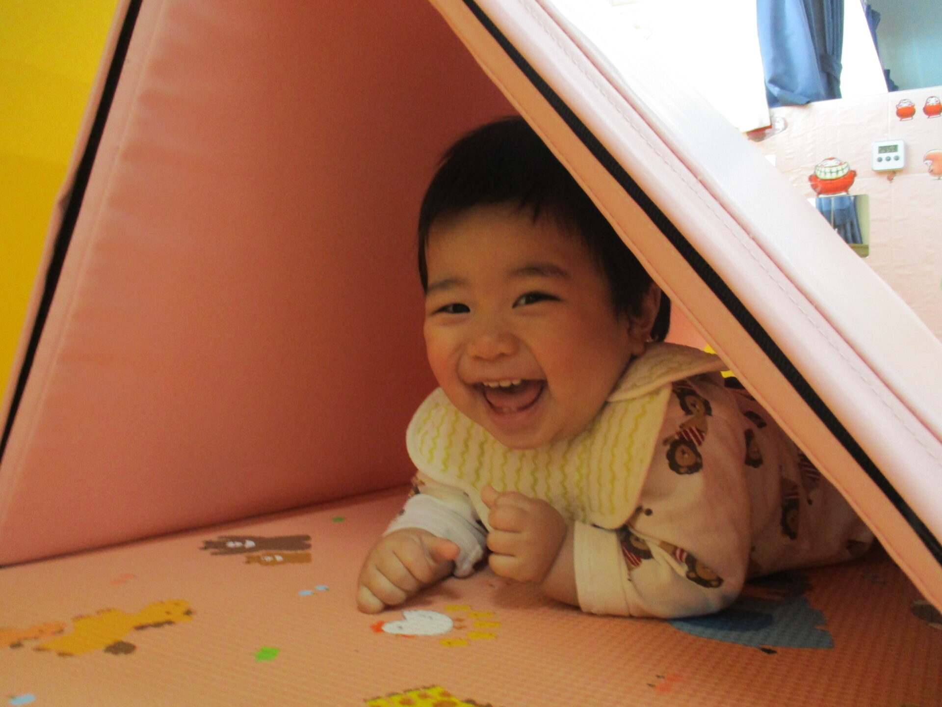 トンネルの中を行ったり来たりして、ばぁ!!と顔を出してにっこり笑顔💕