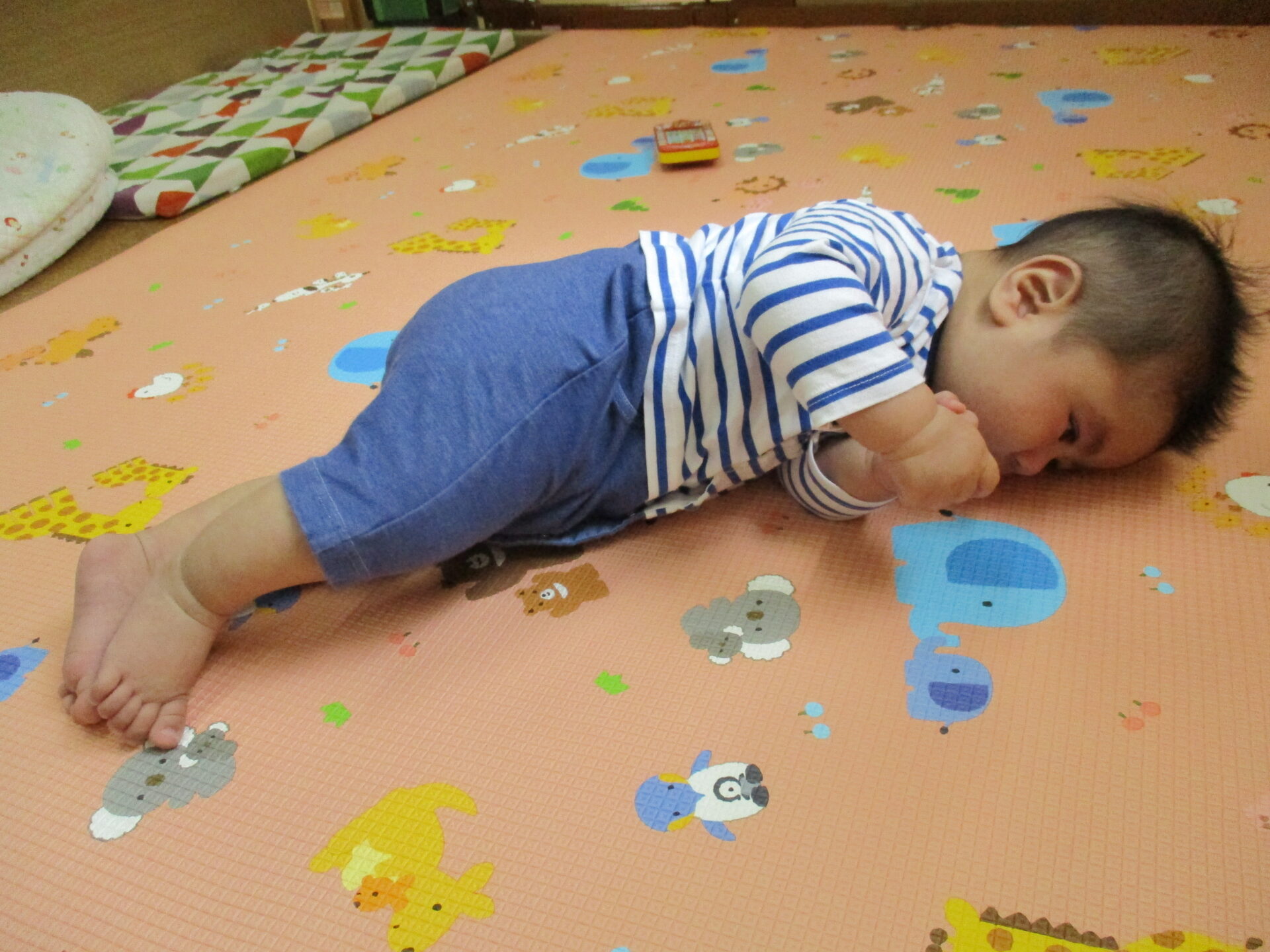 最近、寝返りができるようになり、何度もくり返し頑張る姿がかわいいです💕