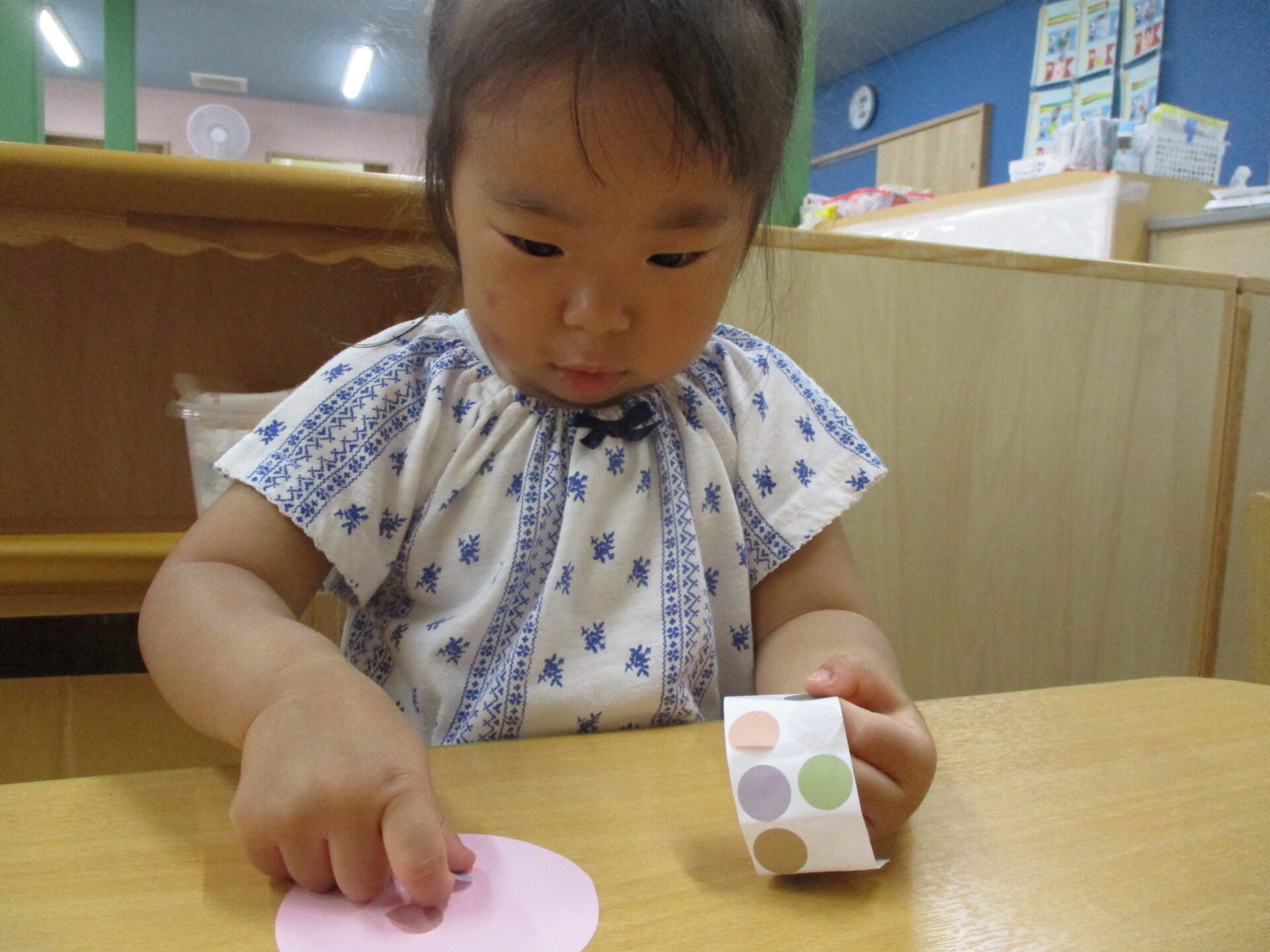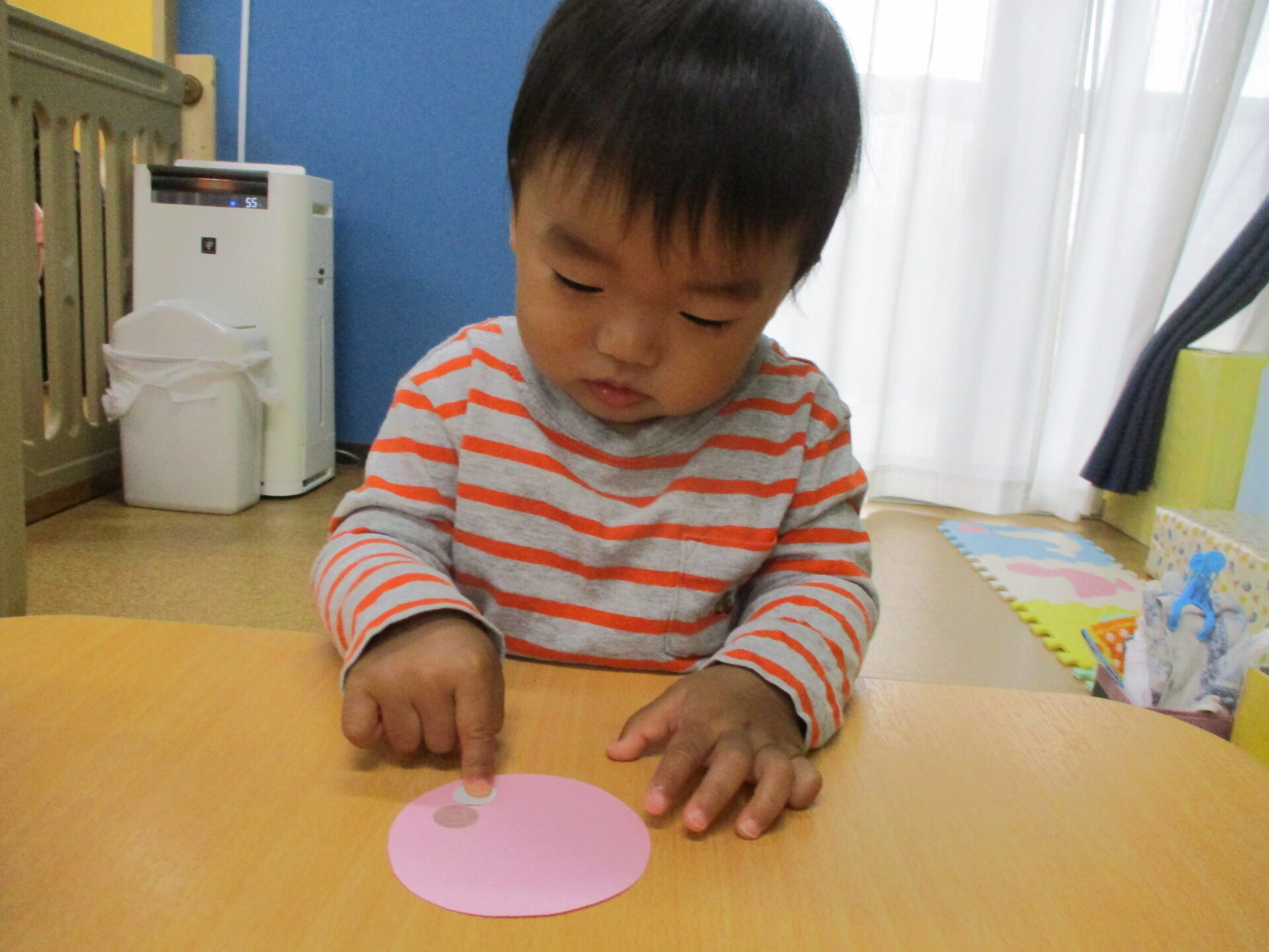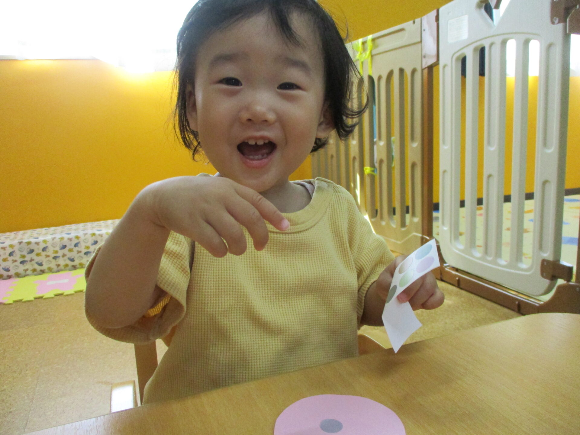 お絵描き・シール貼りに夢中(⌒∇⌒)💕(1歳児だいちチーム)