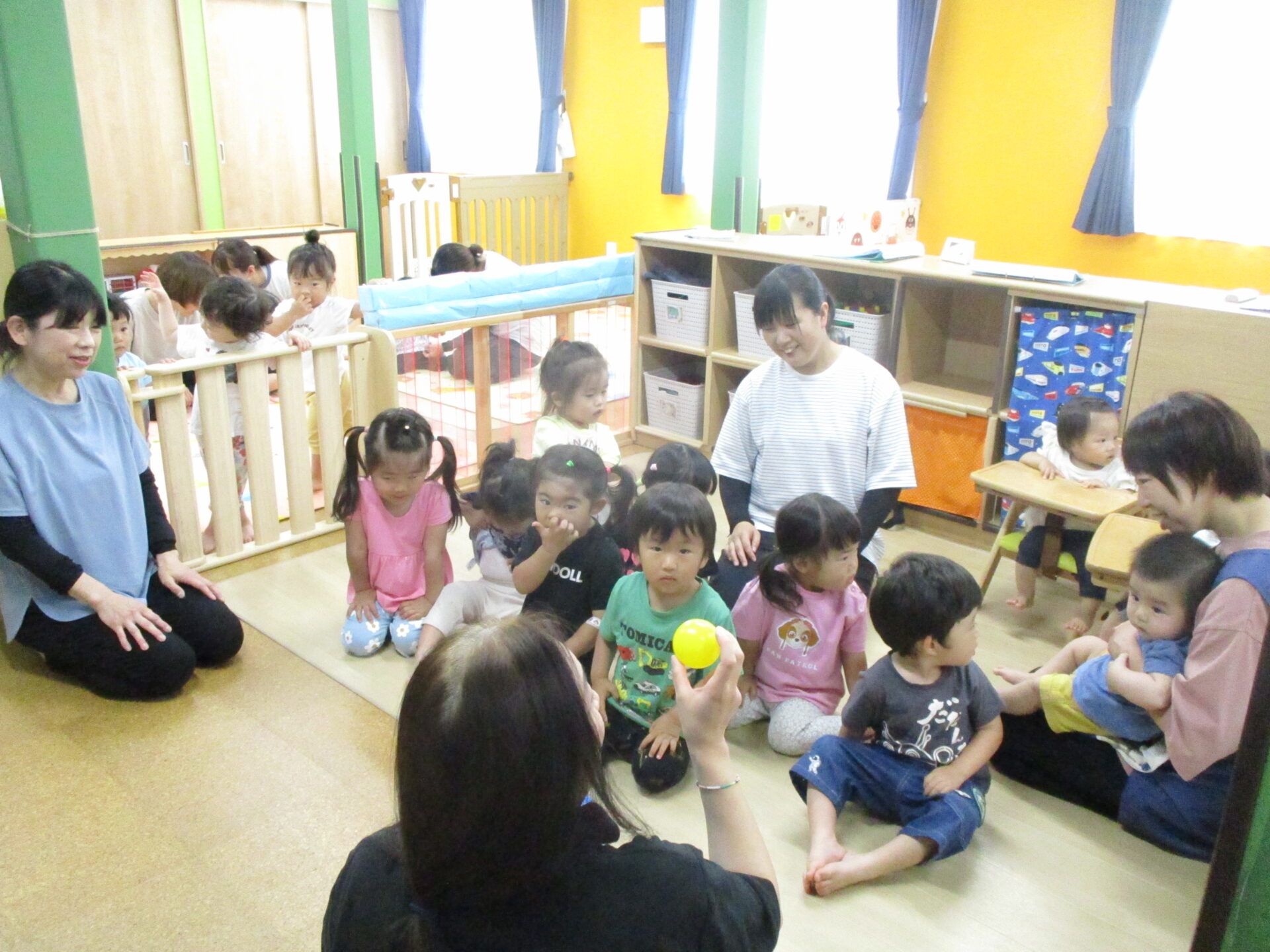 1歳児だいちチームのみんなは、隣のスペースで参加しました(⌒∇⌒)💓