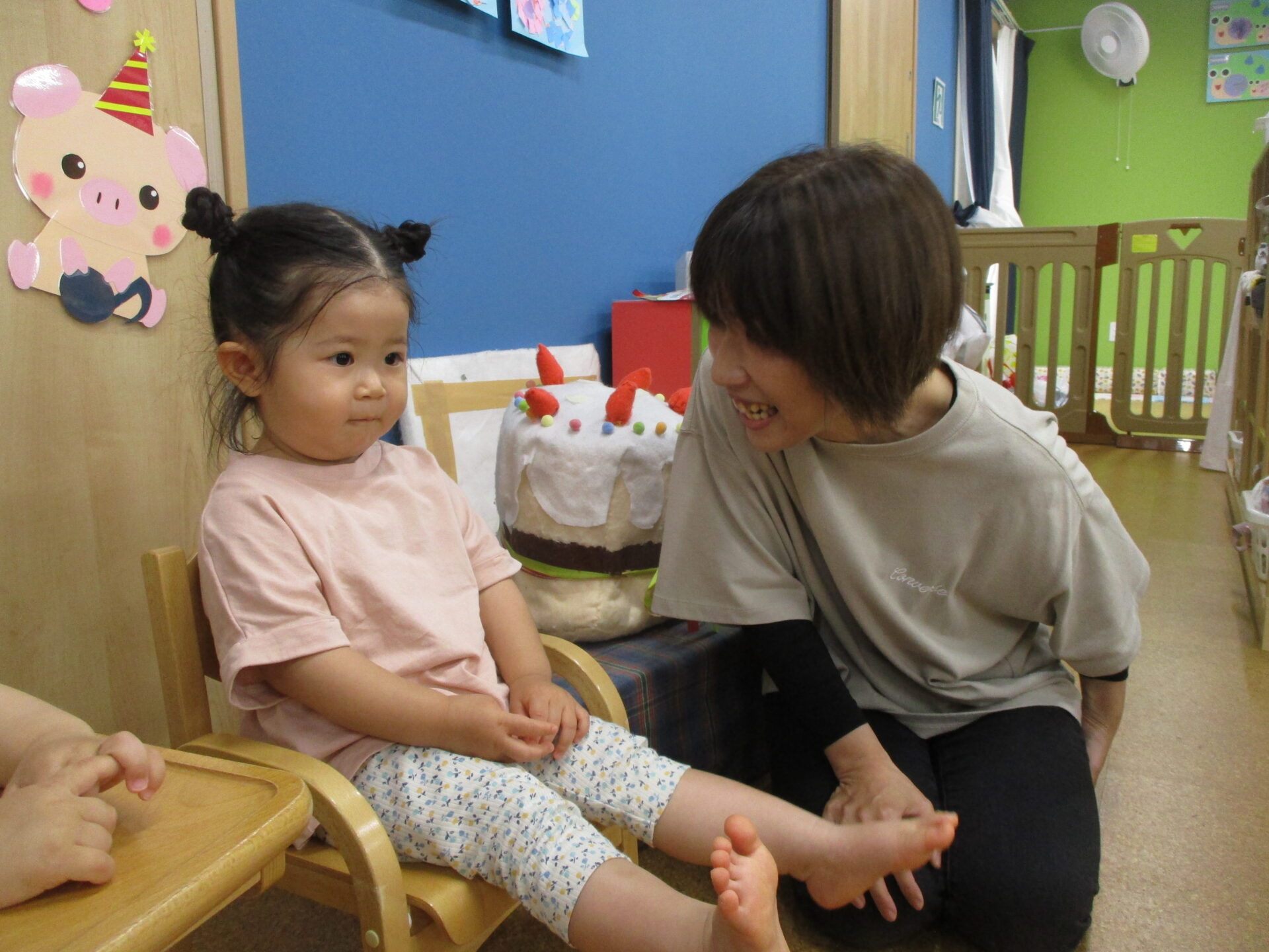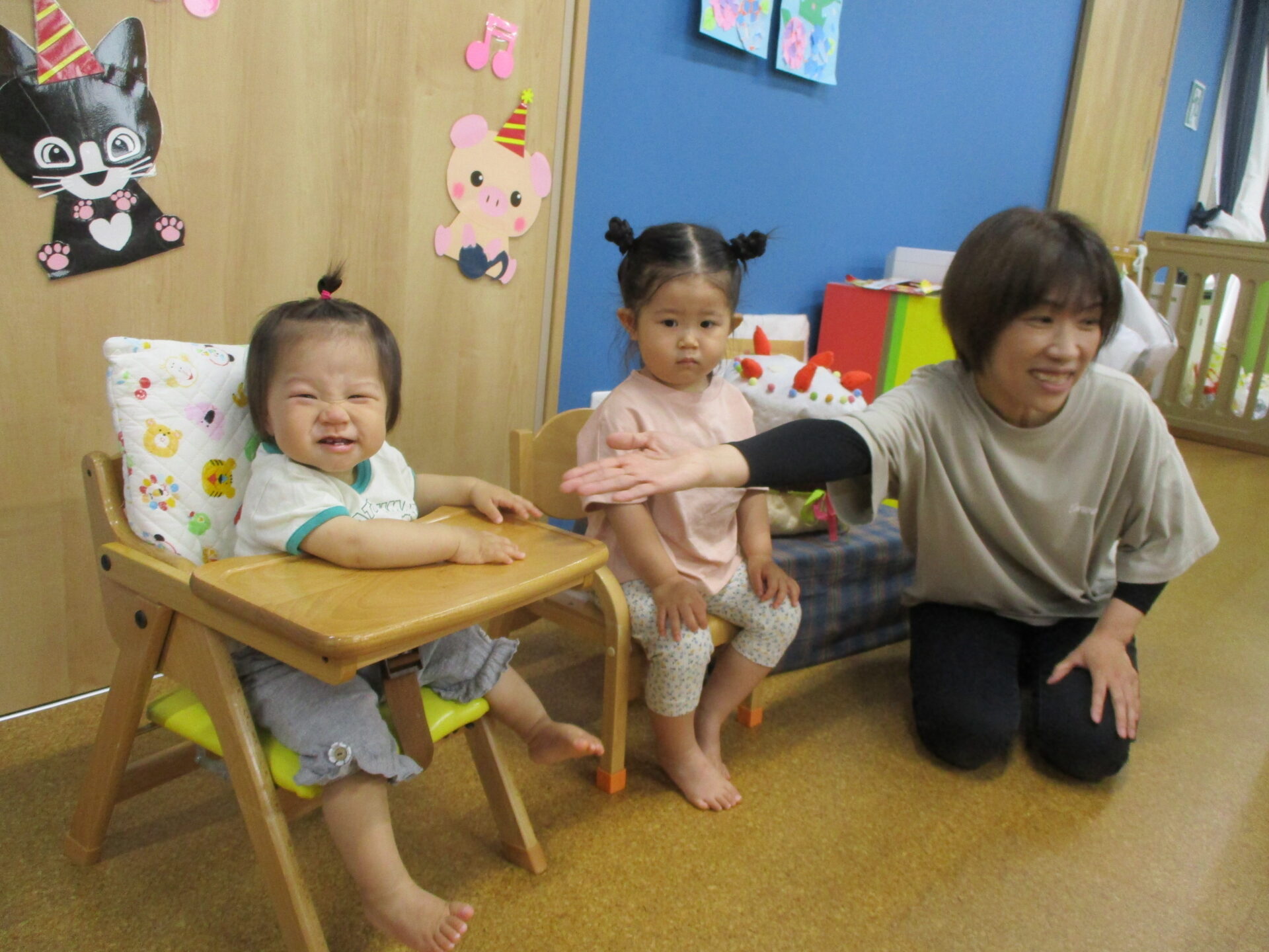 0歳児うみチームと、1歳児だいちチームの可愛い女の子2人です(⌒∇⌒)🎊
