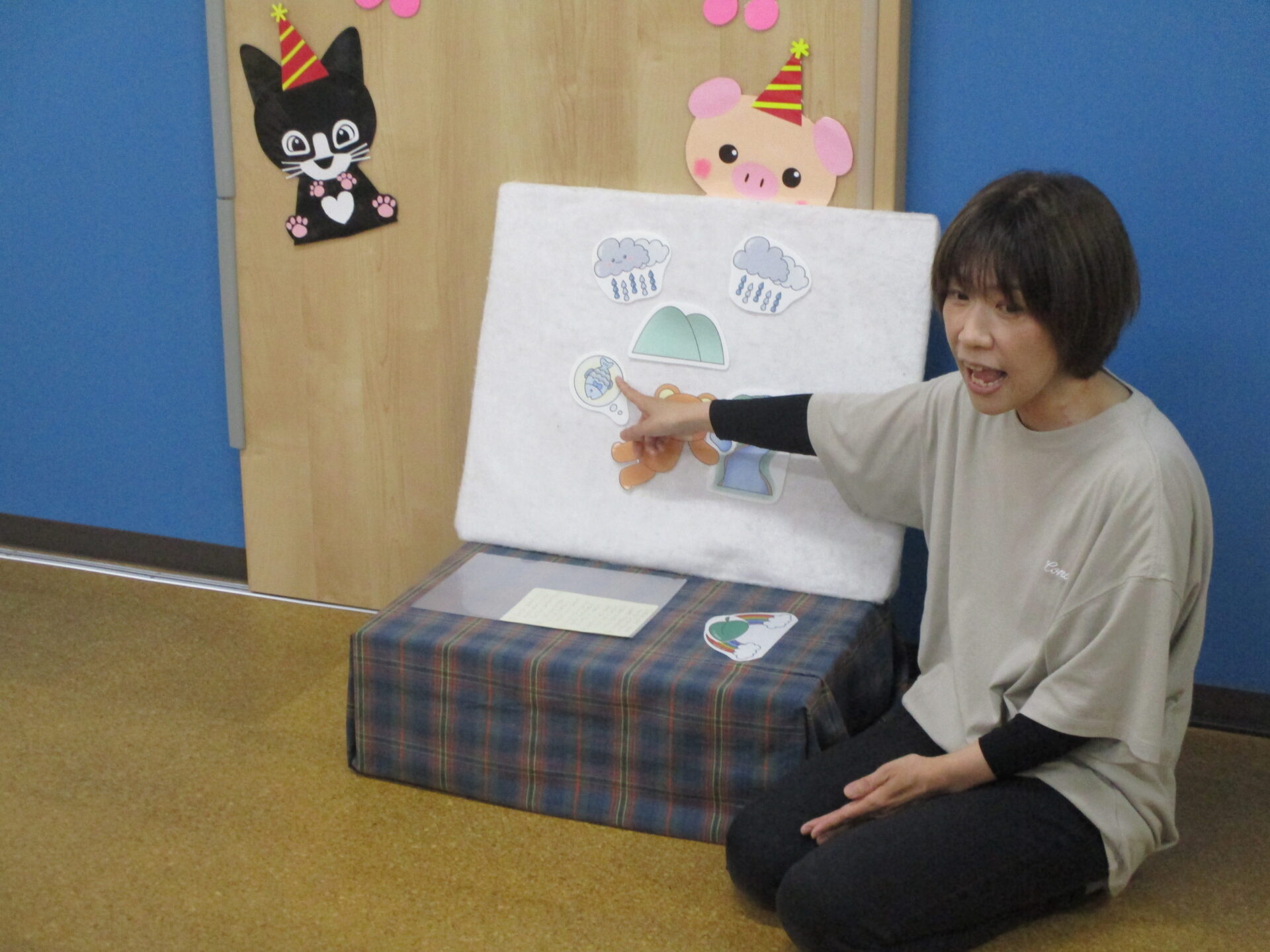 最後に、担当保育者から”あめふりくまのこ🐻”のペープサートのプレゼントでお祝いです🎁✨