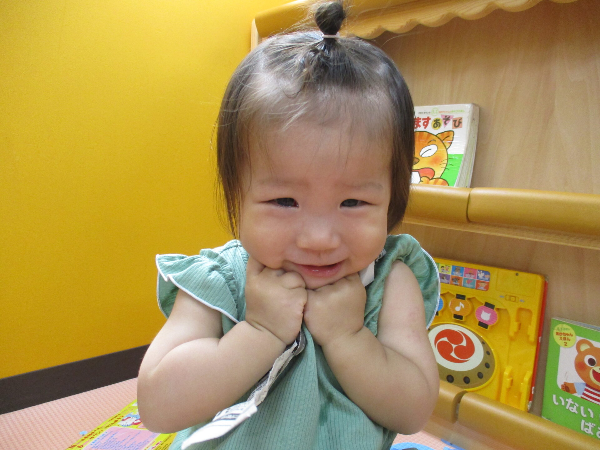 指先を使ってビリビリー!!と、繰り返し破いた新聞をぎゅっと握りしめて満足そう💕