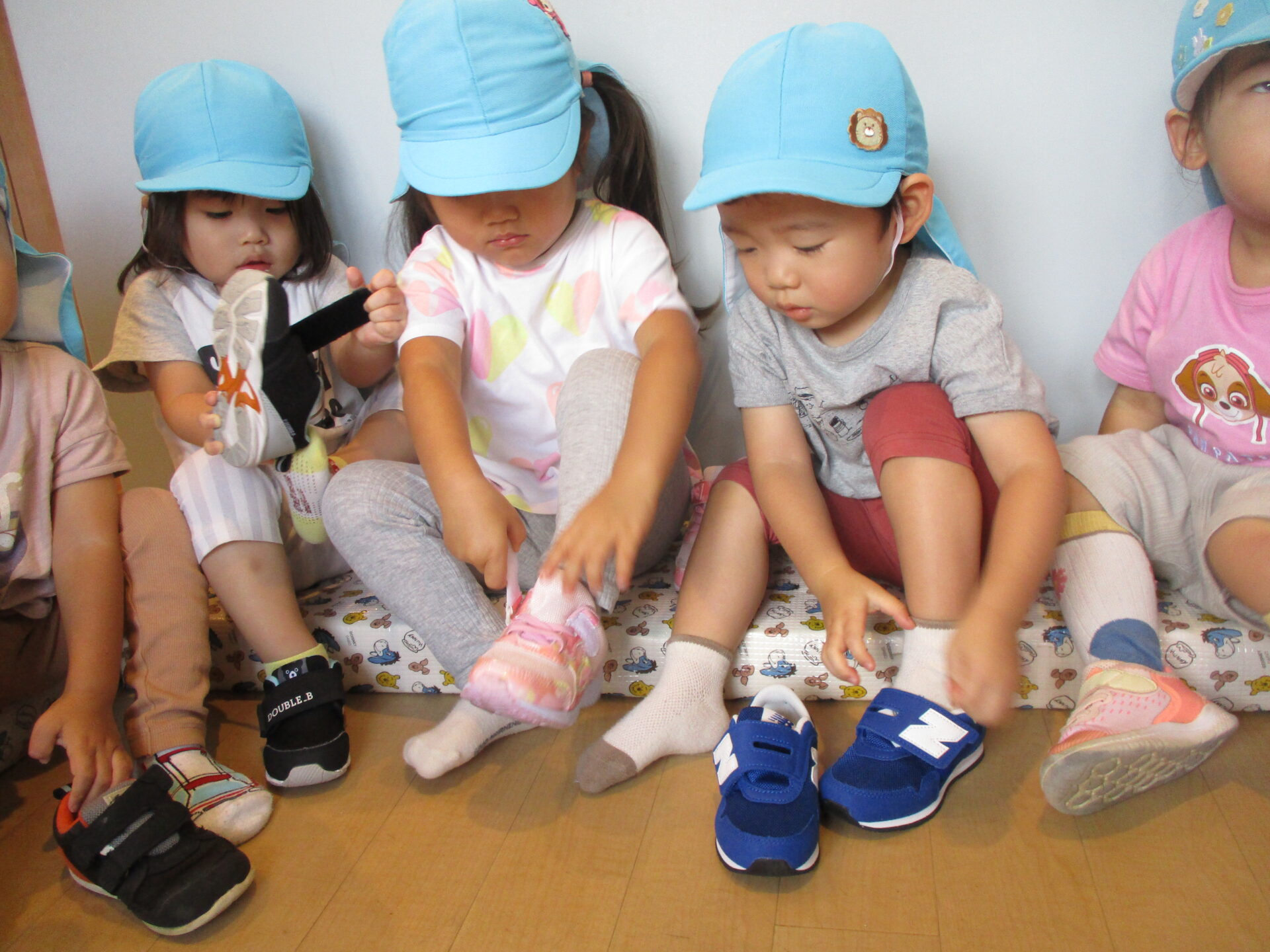 暑さも和らいできたので、「みんなでお散歩に行こうか!」と話すと、「えー!!おさんぽ?!♡」と目を輝かせていたあめチームのみんな🥰久しぶりの散歩なので、お散歩の準備覚えてるかな?と、子ども達と確認してみると、「ぼうし~!」「くつした~!」と、元気な声が返ってきました✨