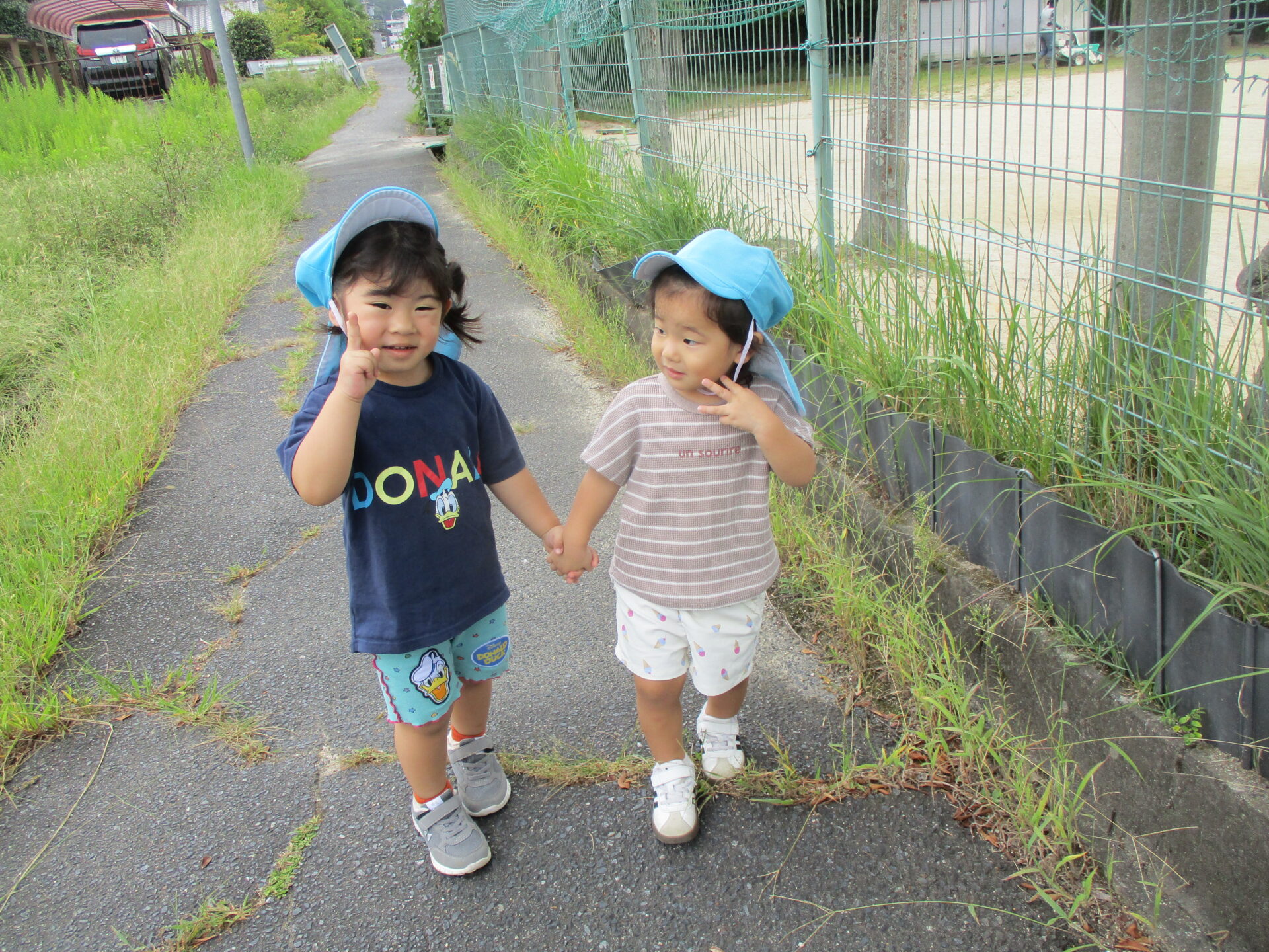 お友だちと手を繋いでご機嫌で歩いていました(⌒∇⌒)口々にお話をし、ご機嫌さんです💕