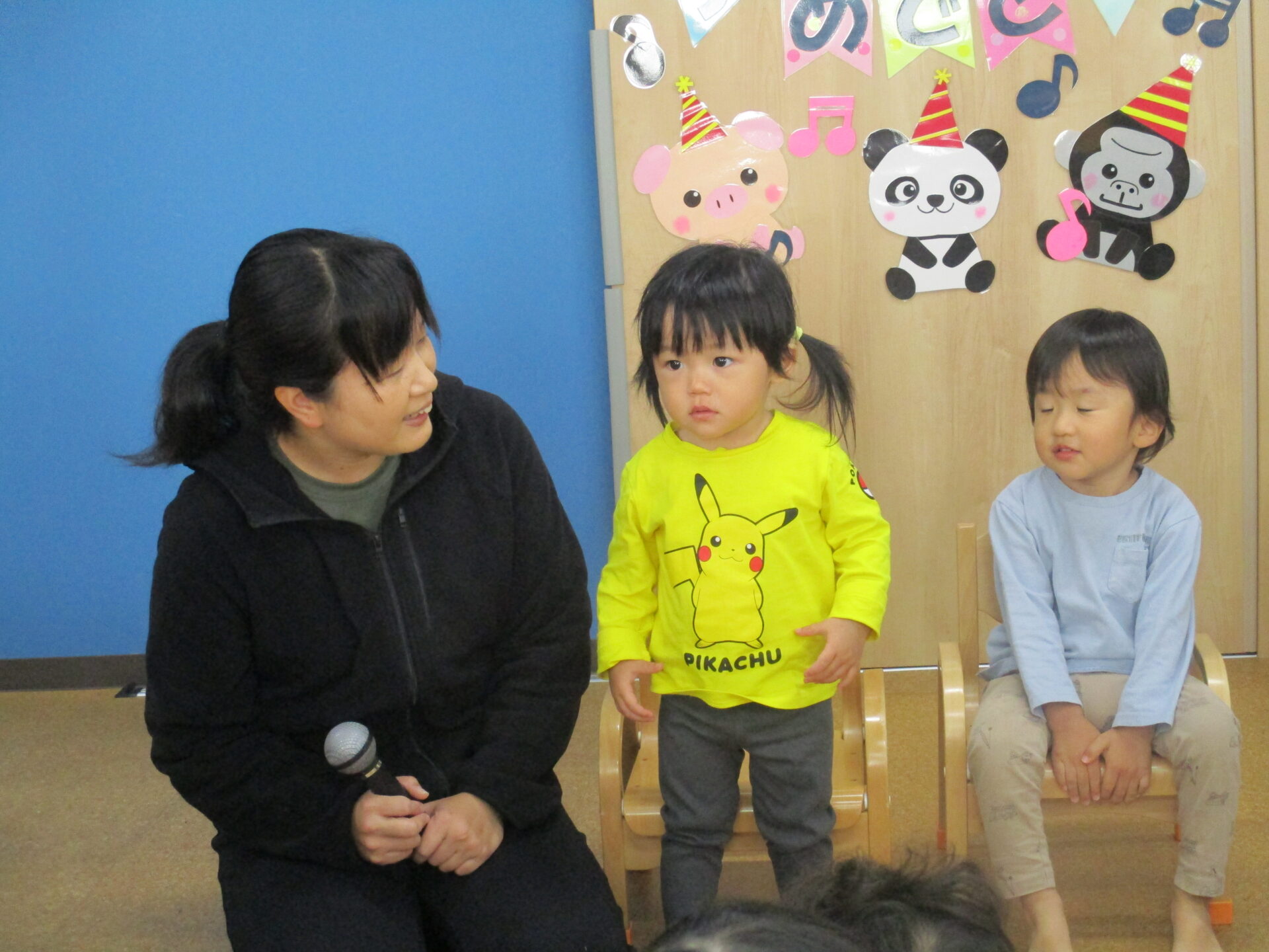 「すきなものはなにかな??」の質問に、担任保育士から「○○ちゃんはアンパンマンがすきです!」と、教えてもらいました(⌒∇⌒)💕