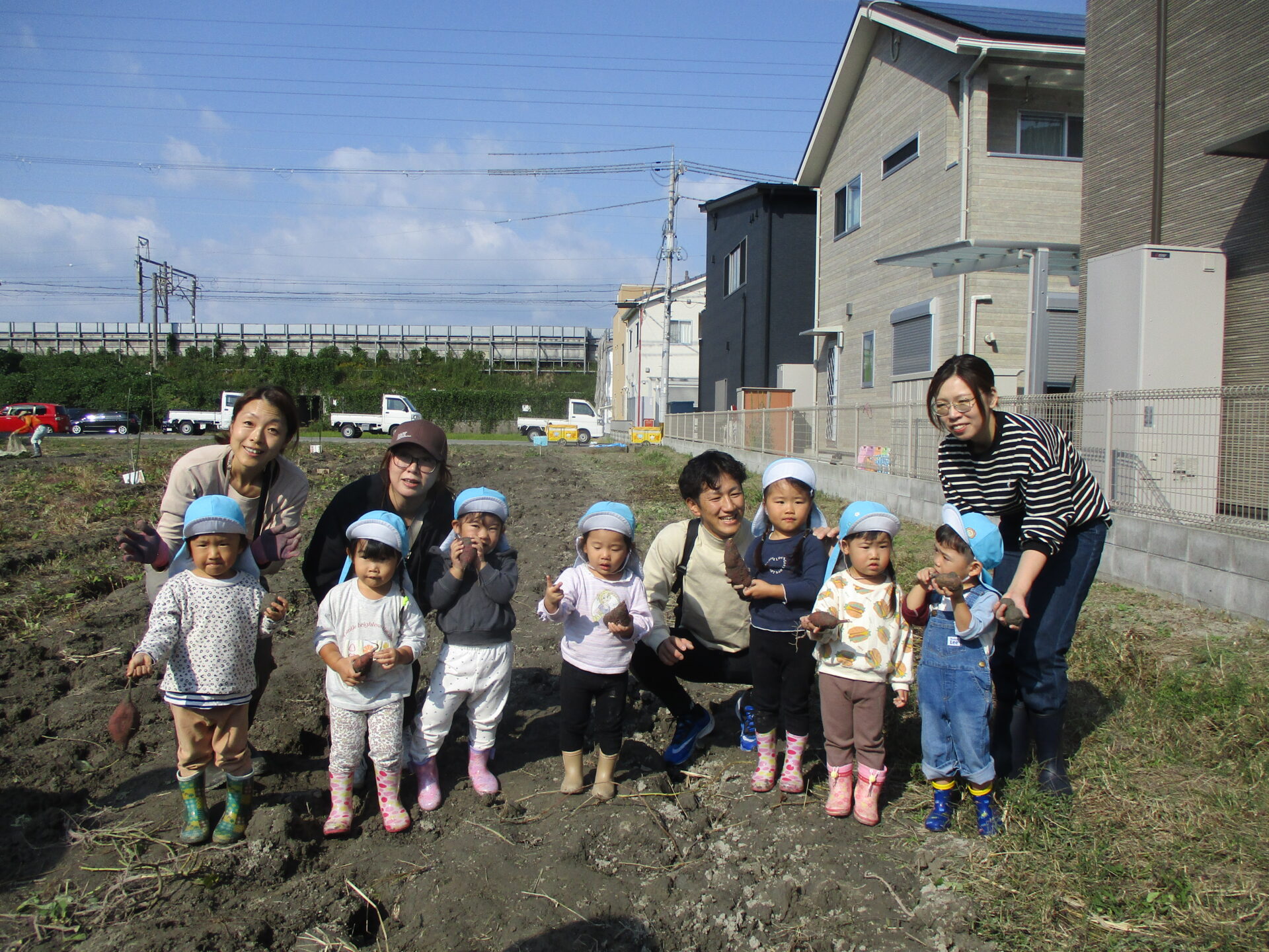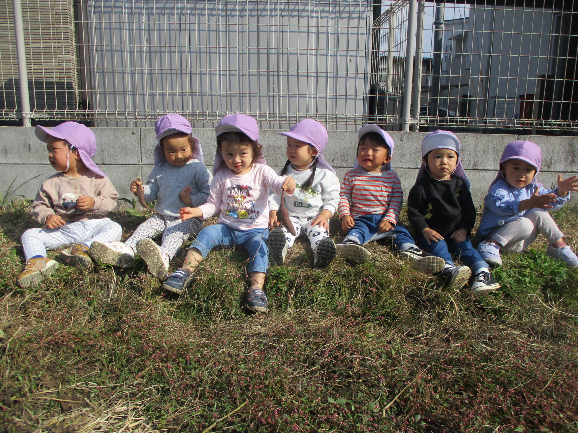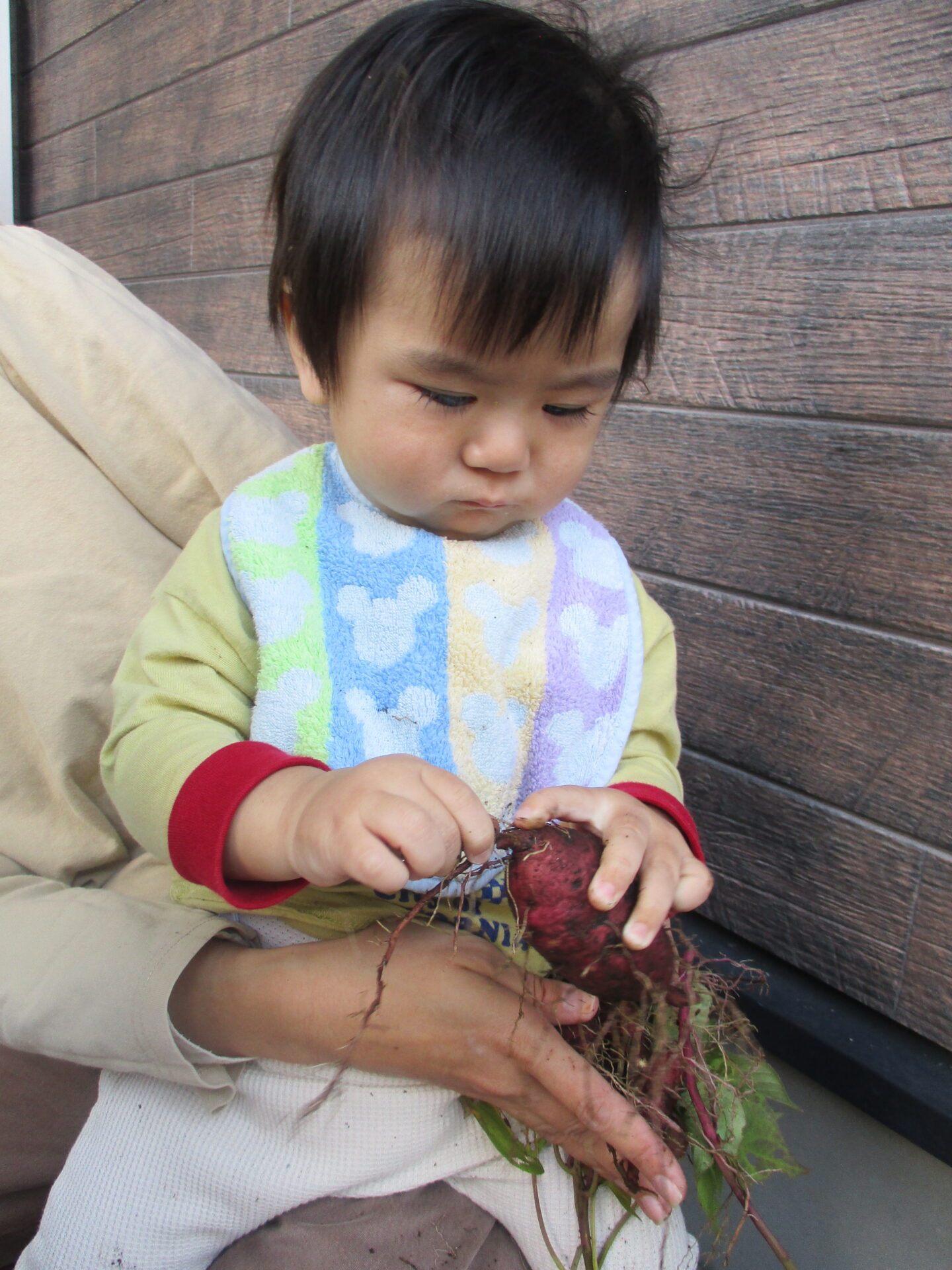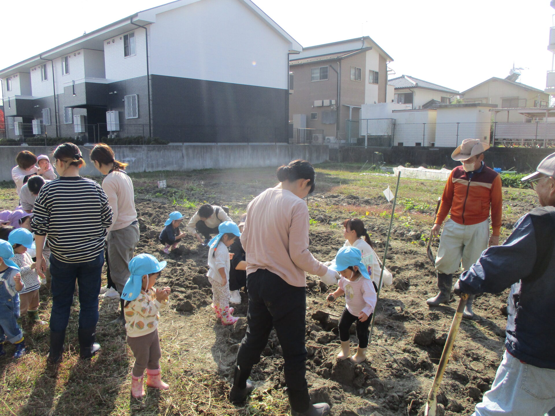 自分で収穫したお芋を持ってとっても嬉しそうな2人💕「こっちにもおいもあるかな?」と、お芋探しに夢中になっていました(⌒∇⌒)