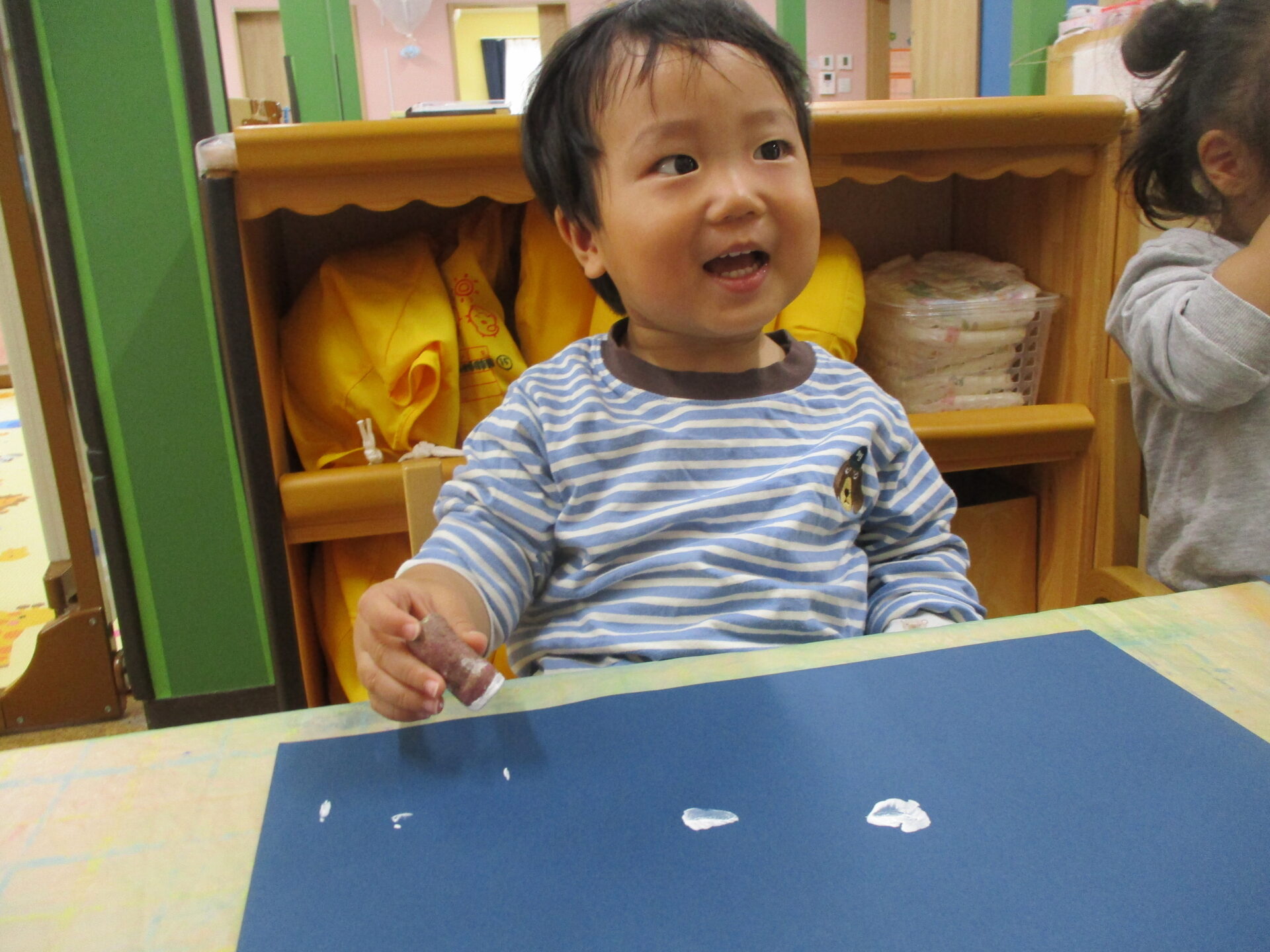シールの台紙から剥がすことはまだ少し難しいみんなですが、ペタンと貼るたびに嬉しそうにしていました(⌒∇⌒)💕