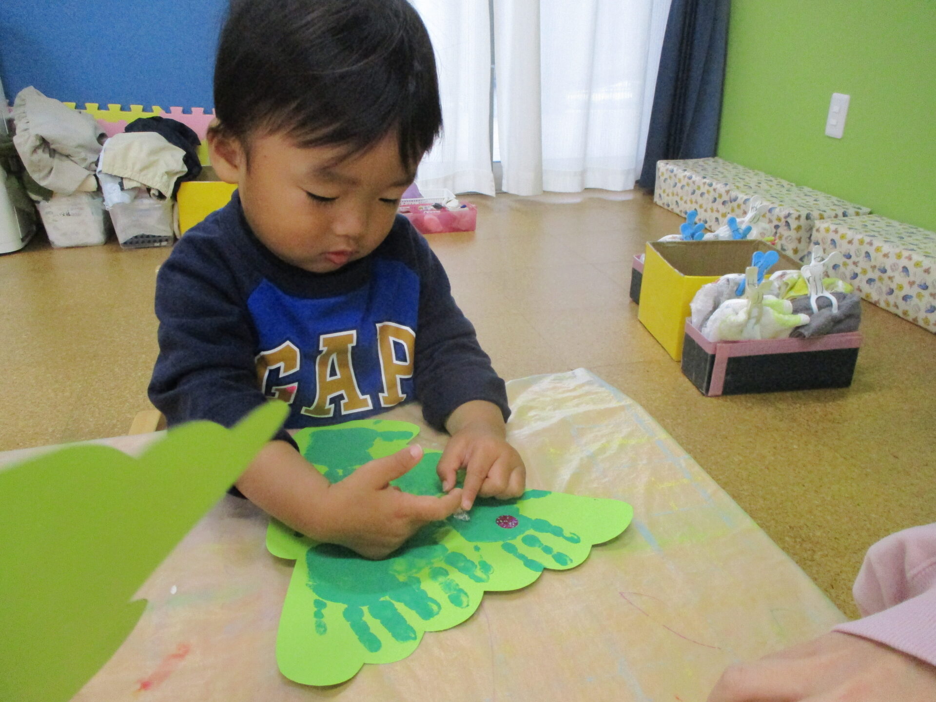 指先を上手に使って、狙った場所ににペッタン!!集中して取り組んでいました(⌒∇⌒)💕