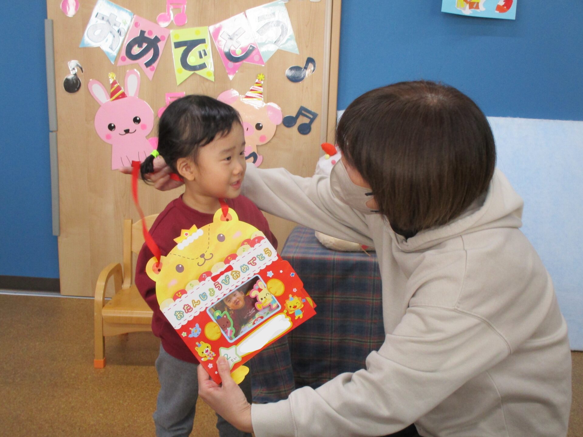 担任の先生から誕生日カードのプレゼントをもらって、うれしそうでした🥰