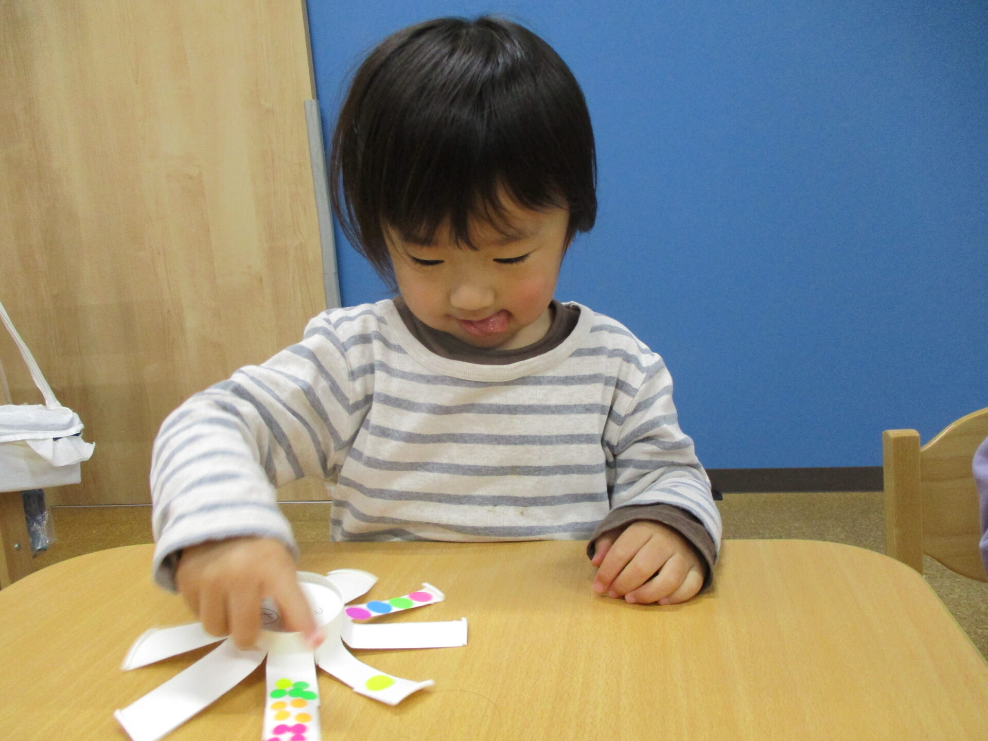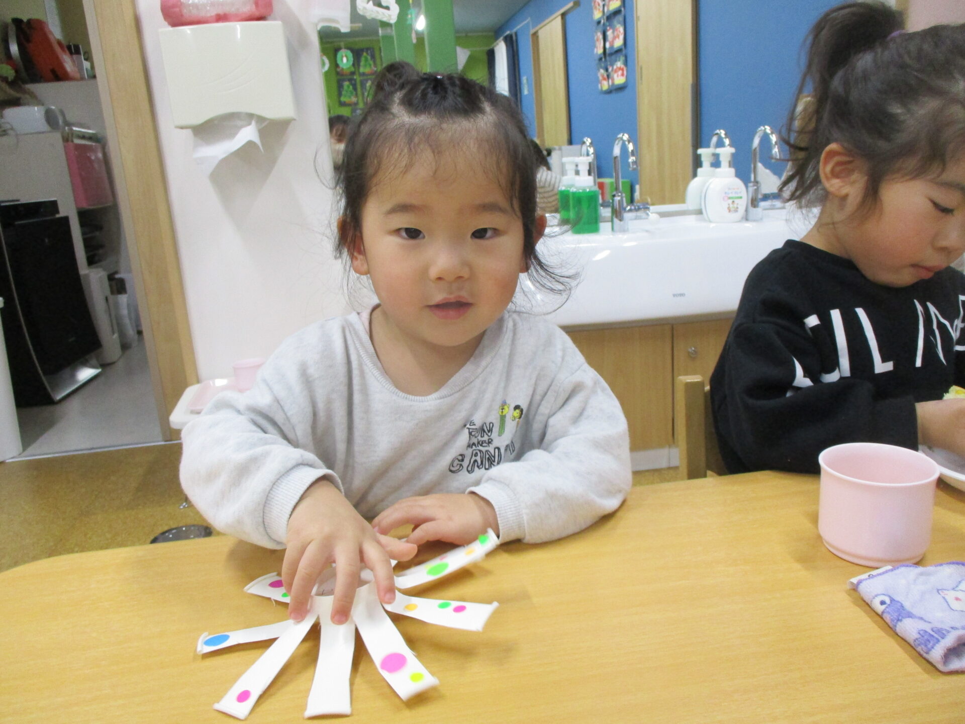 手作りのコマ回しを楽しんでいます(⌒∇⌒)💕「せんせい、みててね!」と言って回して見せてくれます✨