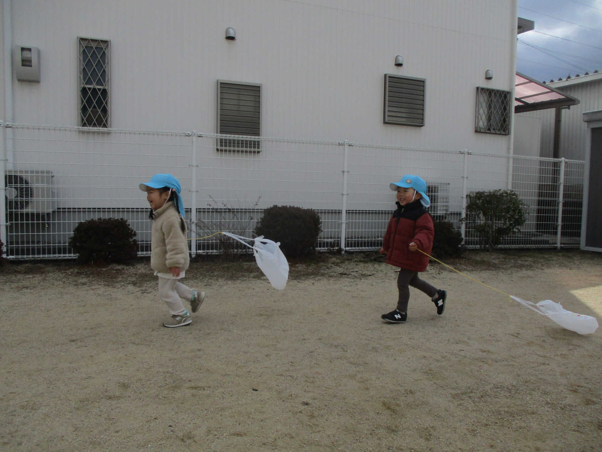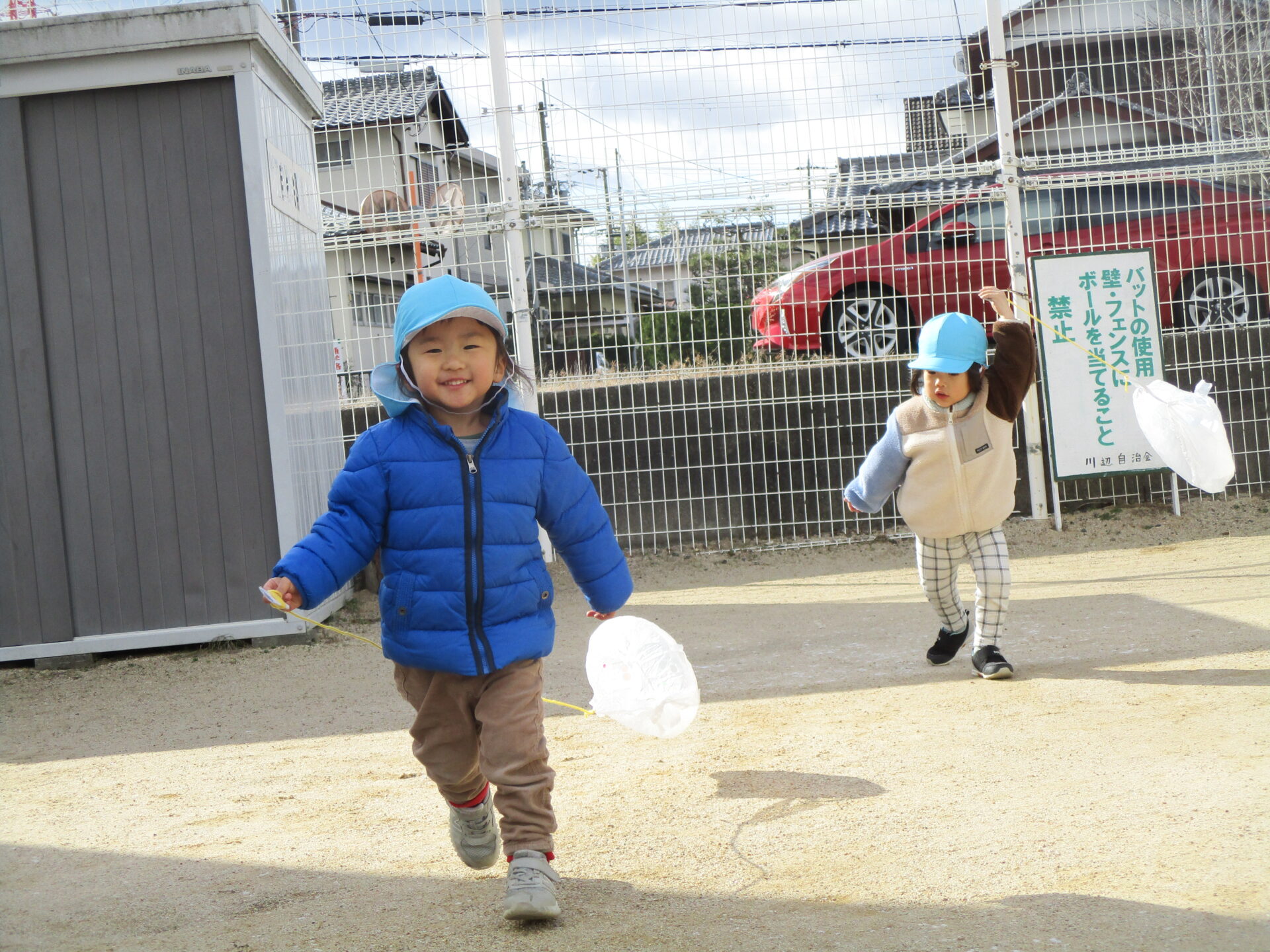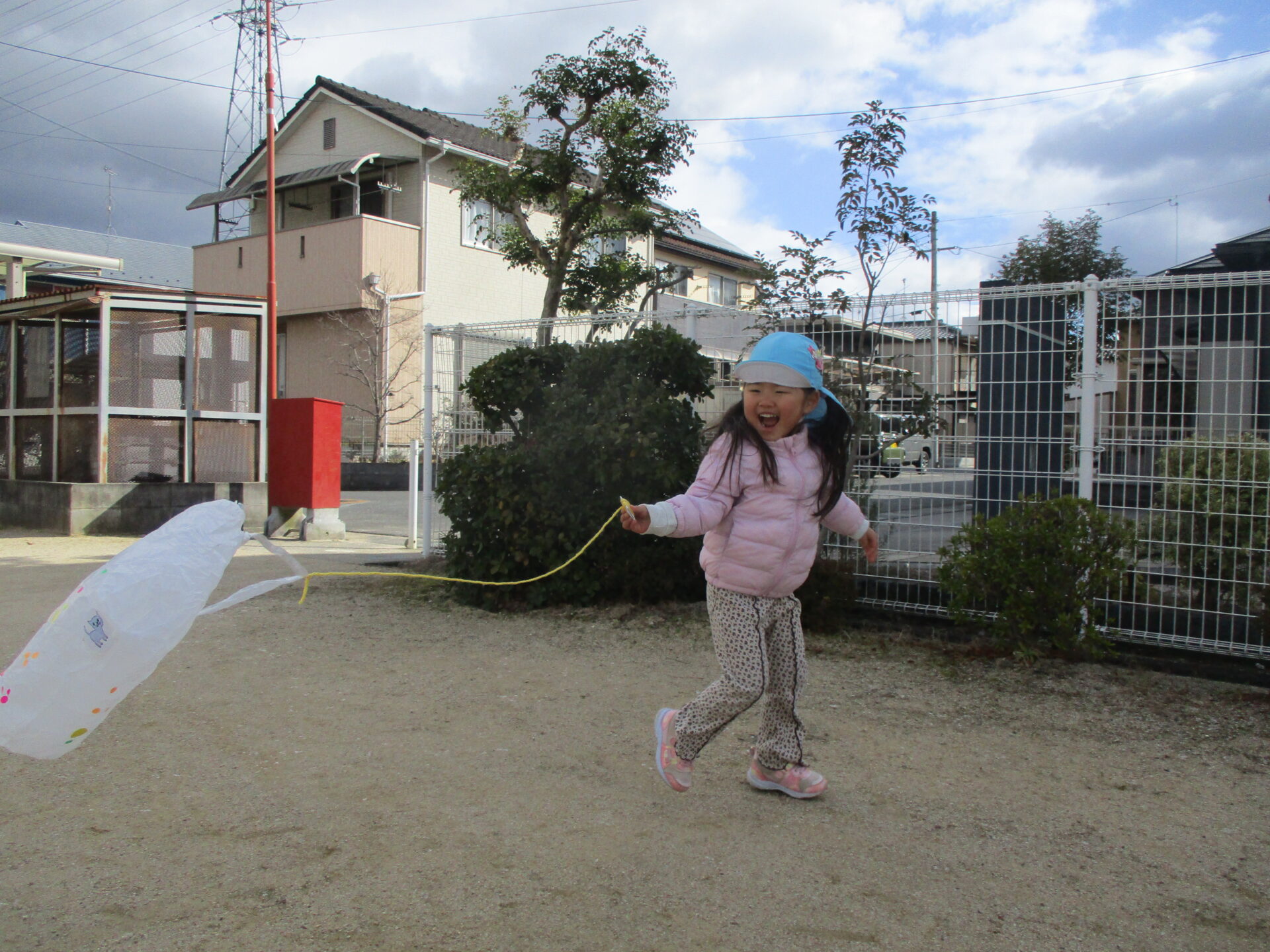 お友だちと一緒にヨーイドン!!凧あげって楽しいね🥰