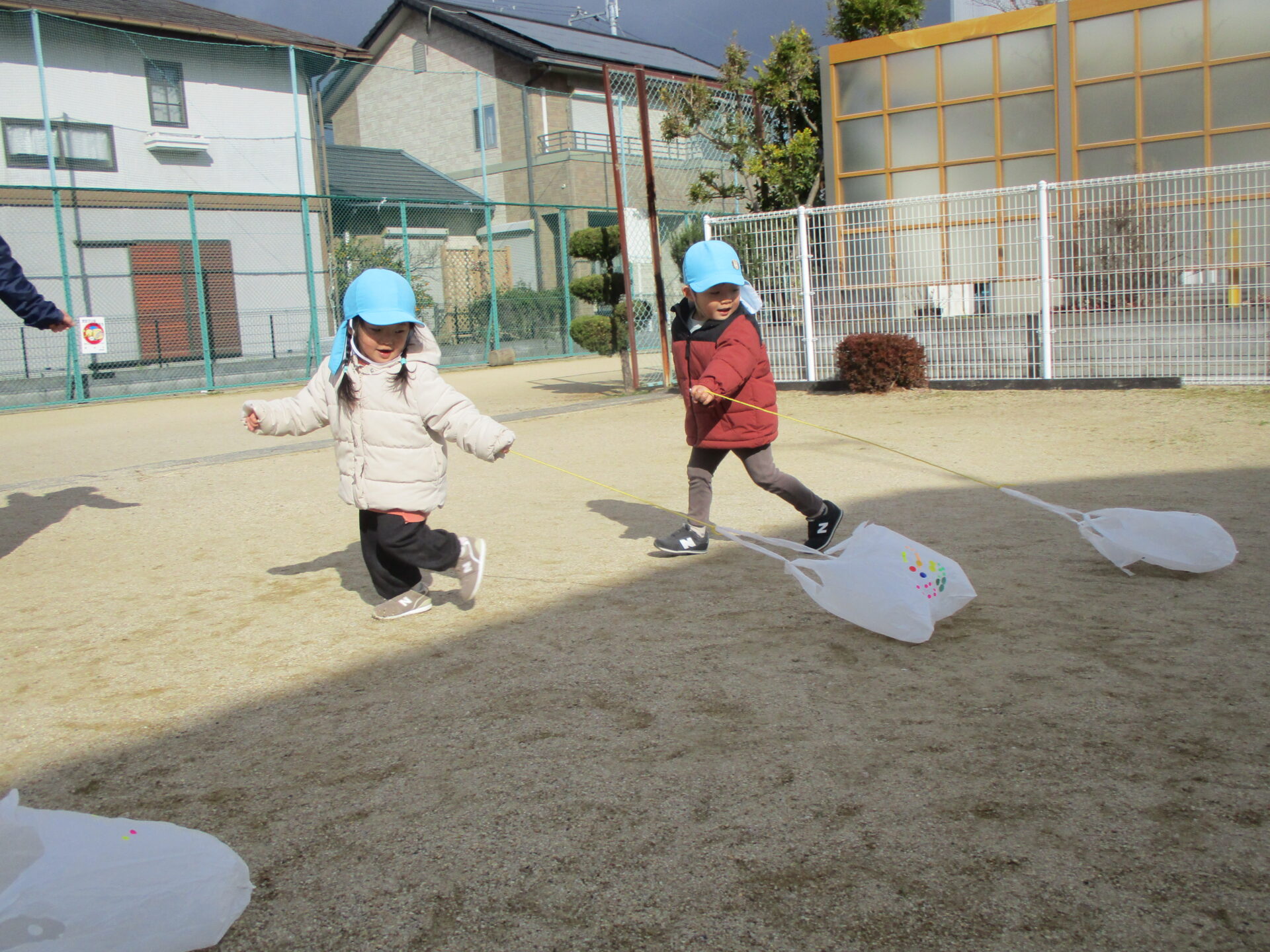 お友だちと一緒にヨーイドン!!凧あげって楽しいね🥰