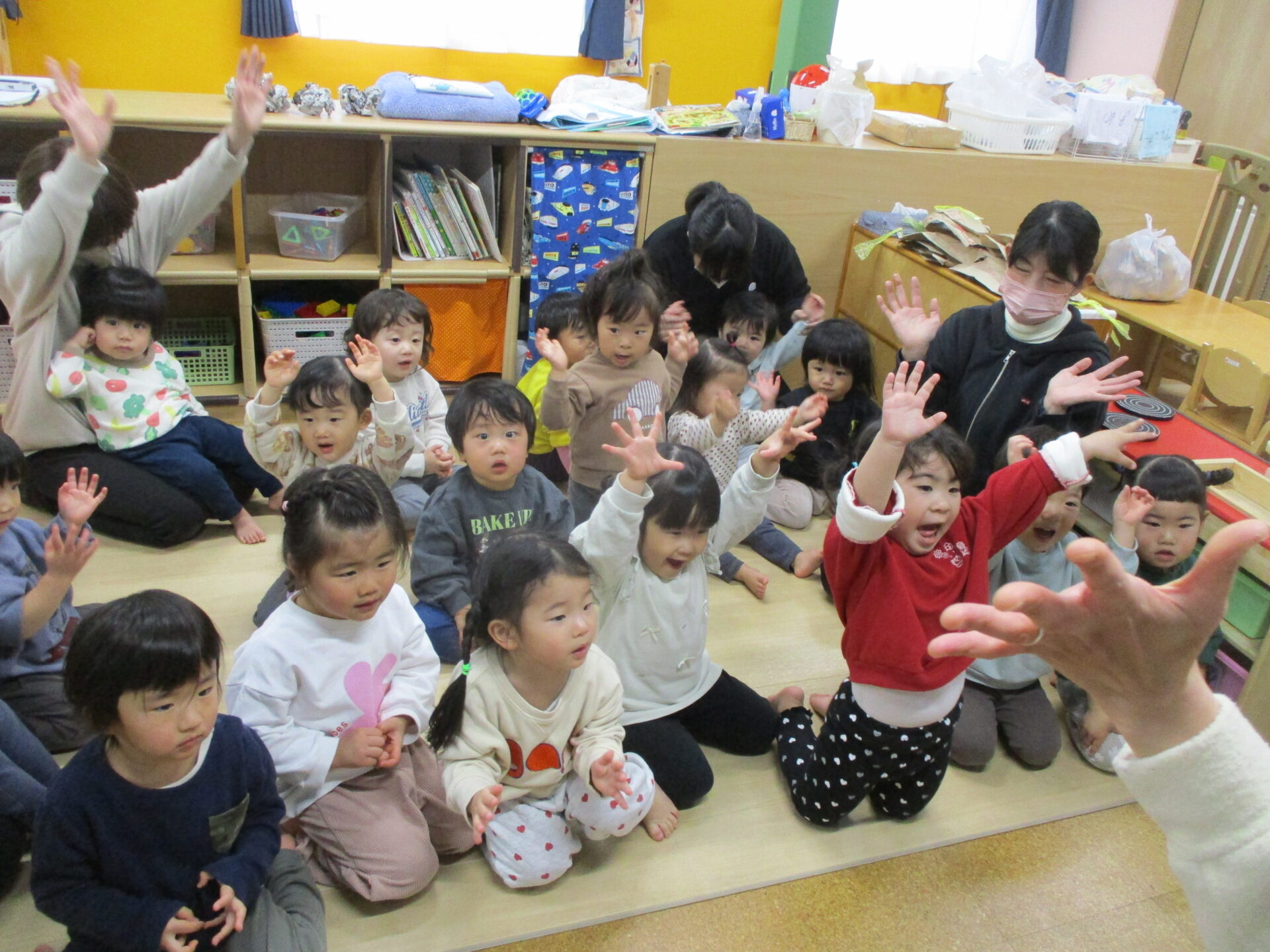 最後にみんなの中の悪い鬼は逃げていったかな?と保育者の話を聞き、大好きな歌「鬼のパンツ」をうたいました🎵