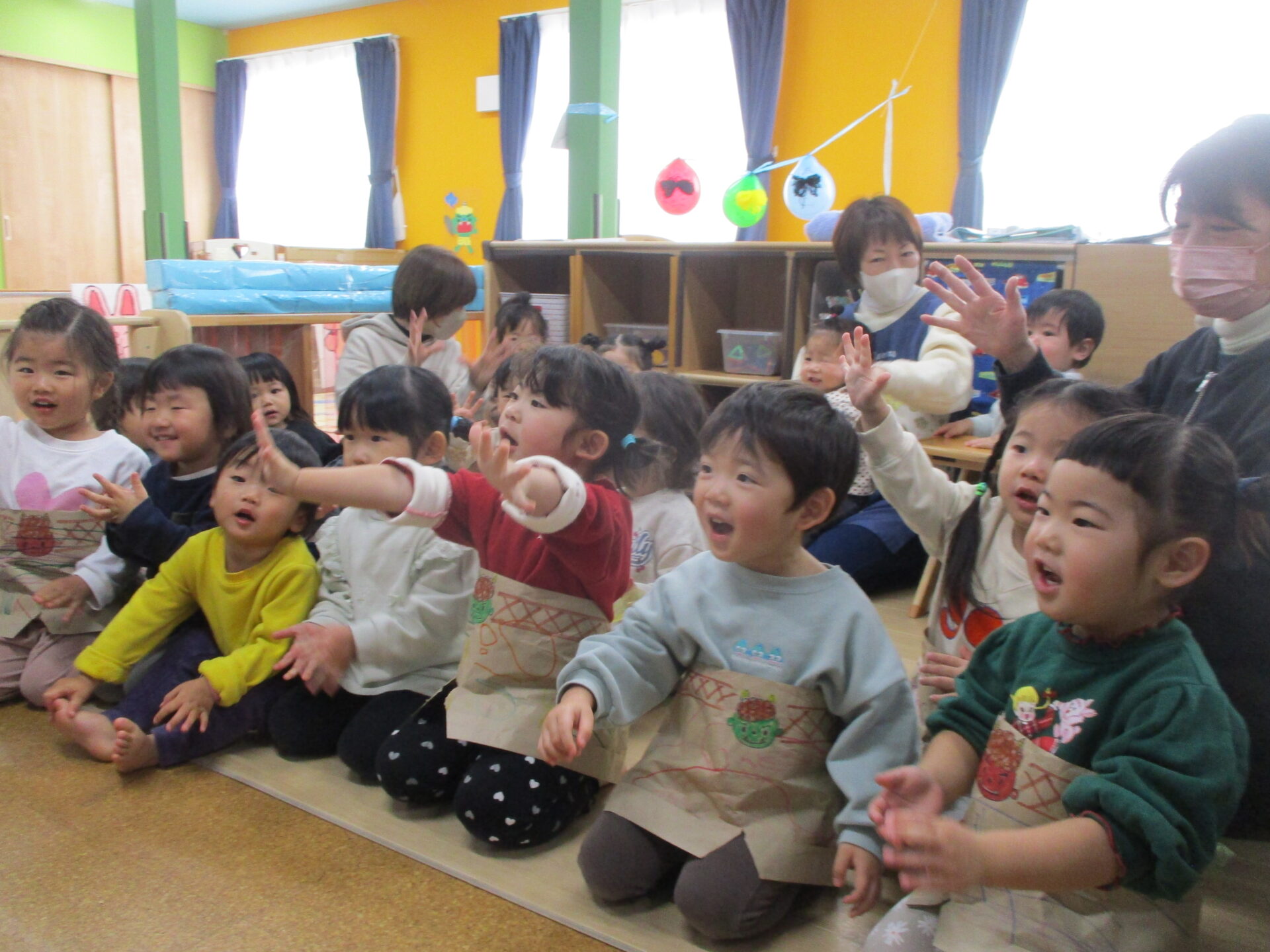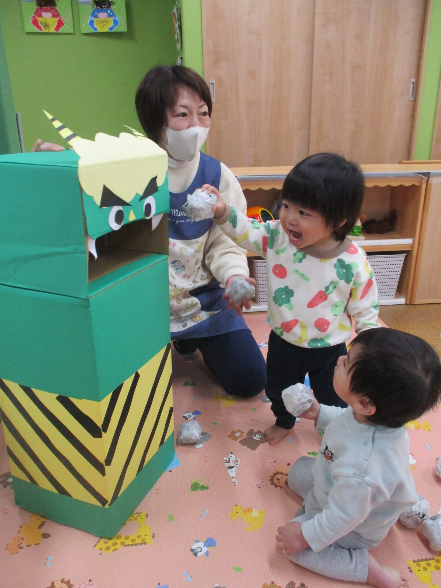 治田くじら小規模保育園では、全チームで集まって節分の行事を楽しみました!!