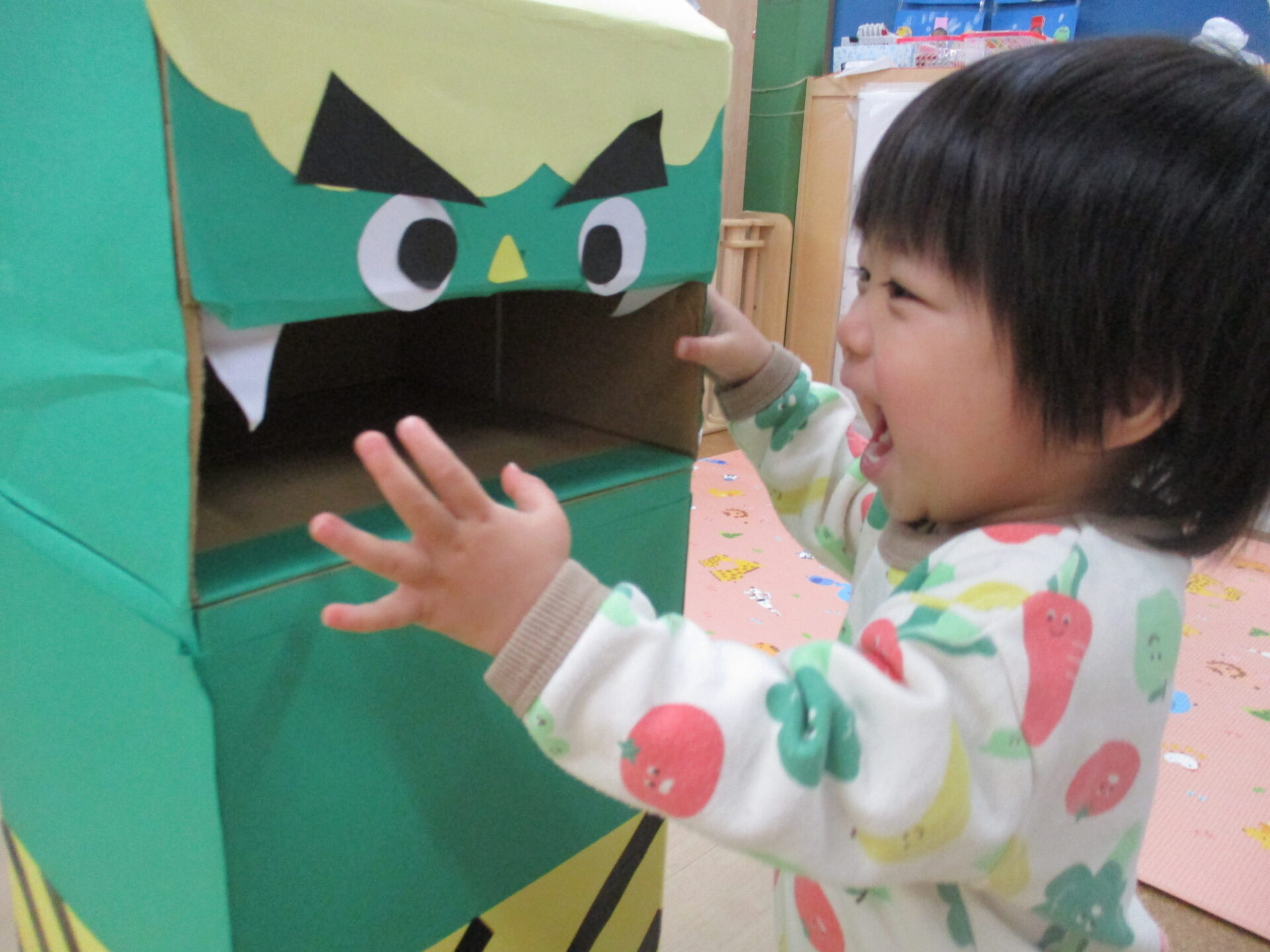 鬼さんが動くと「きゃー💕」と言って大喜び😊