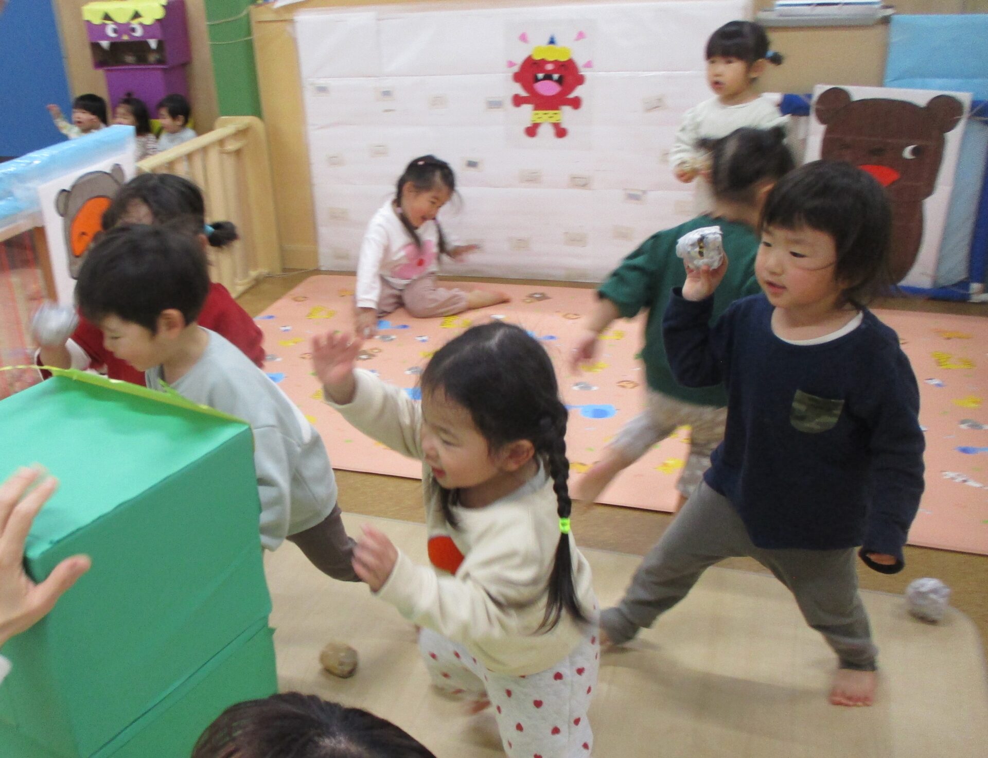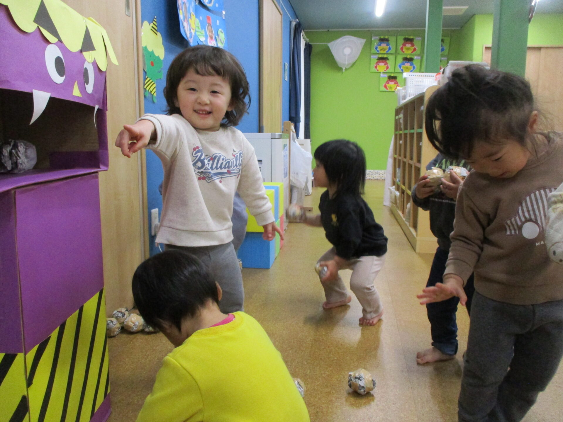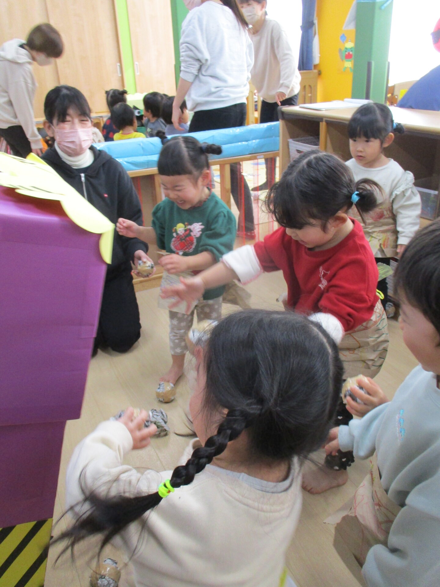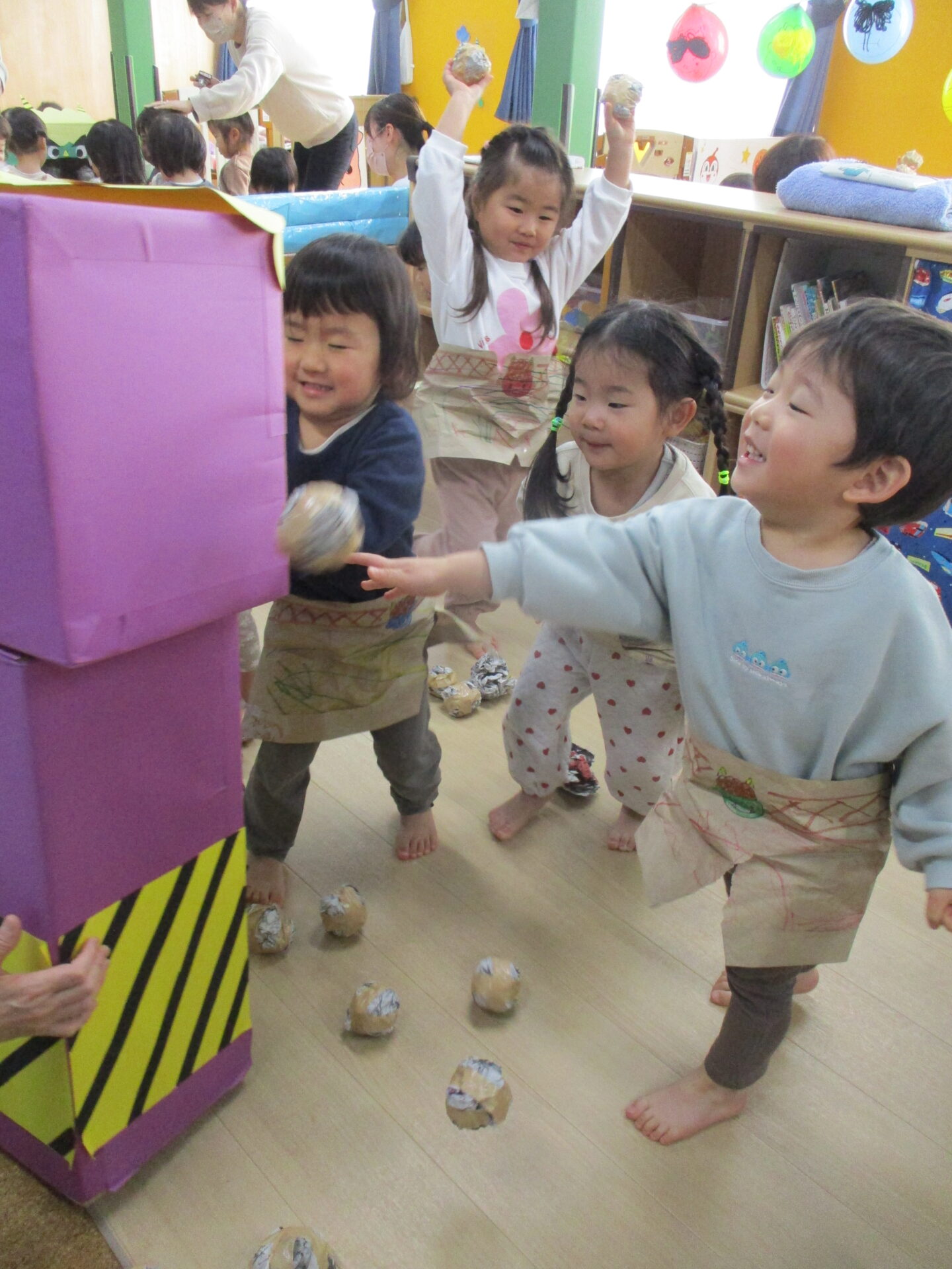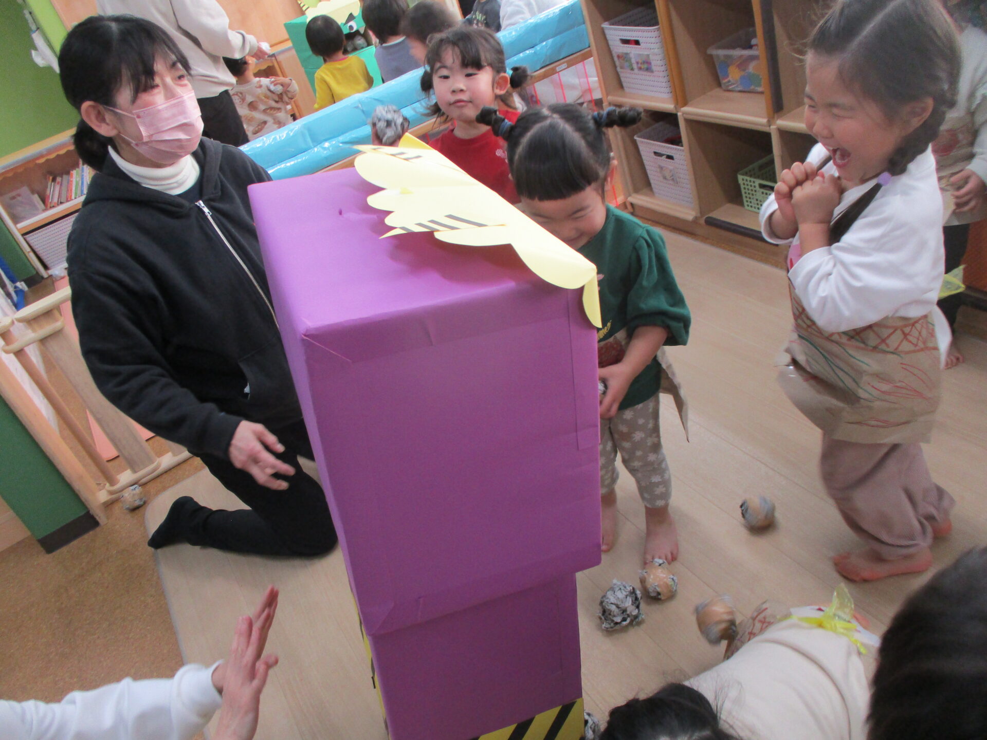 子どもたちも、保育者も大盛り上がりの豆まきでした✨