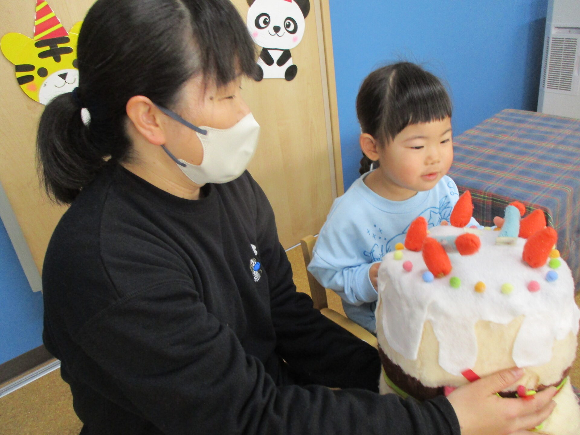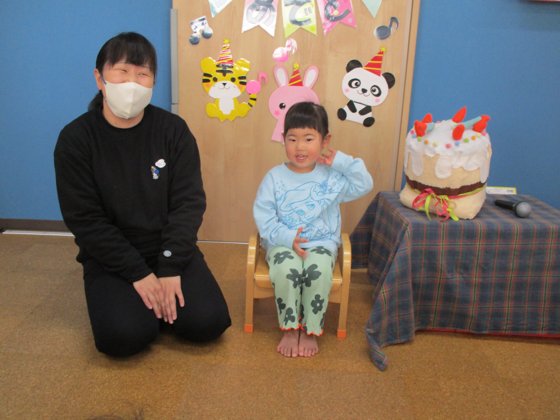 2歳児あめチームの可愛い女の子です🥰「つぎは○○ちゃんのばんかなぁ♡」と、お誕生日会を楽しみに待っていました💕