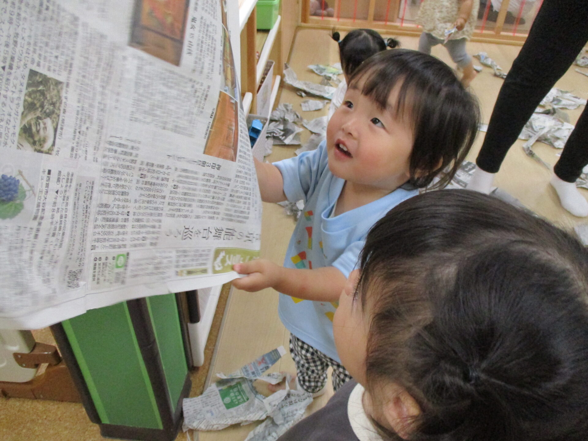 楽しい新聞遊び🎵(1歳児だいちチーム)