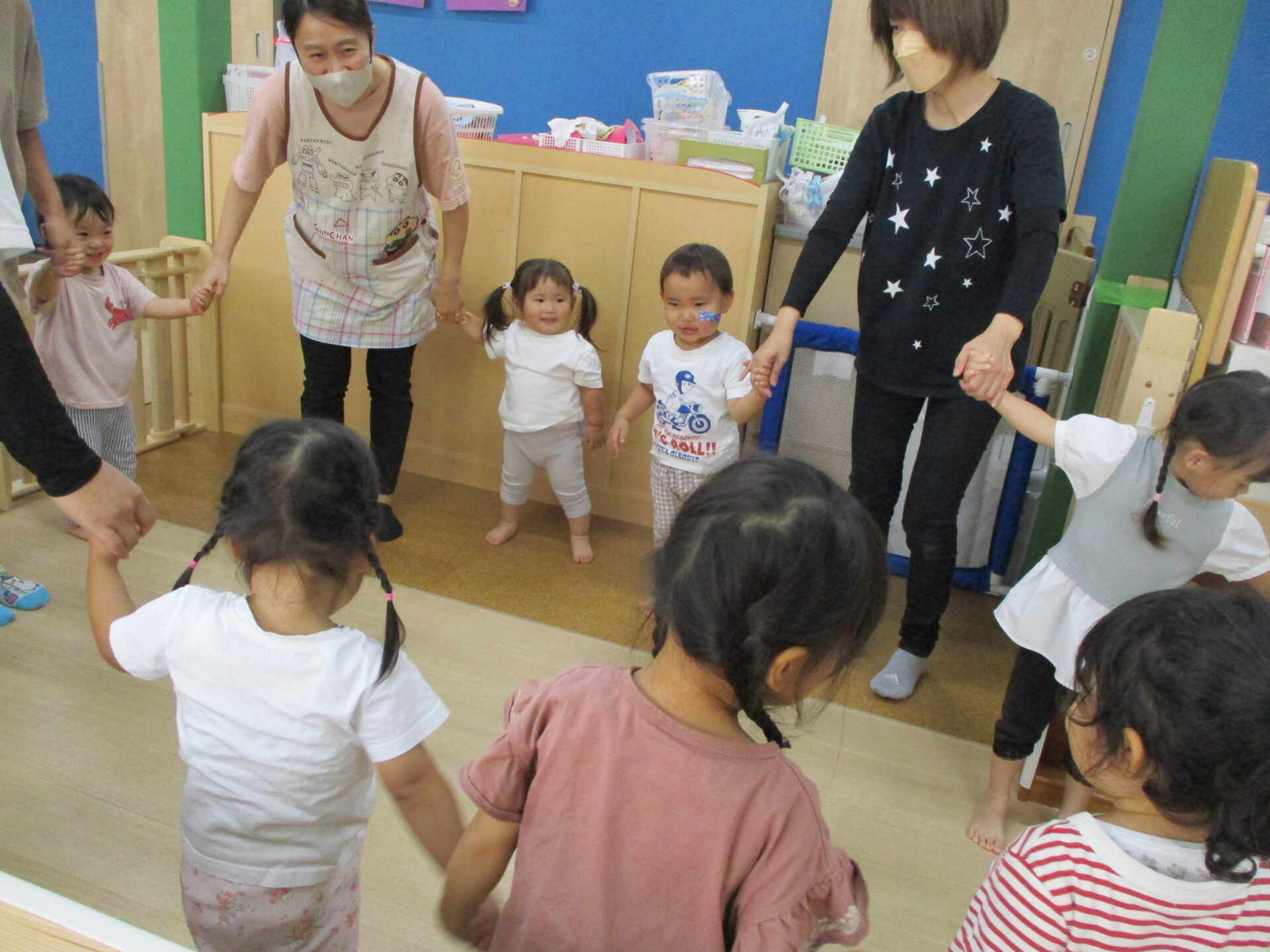 月齢の低いお友達は、みんなの様子を楽しそうに見つめながら参加💕
