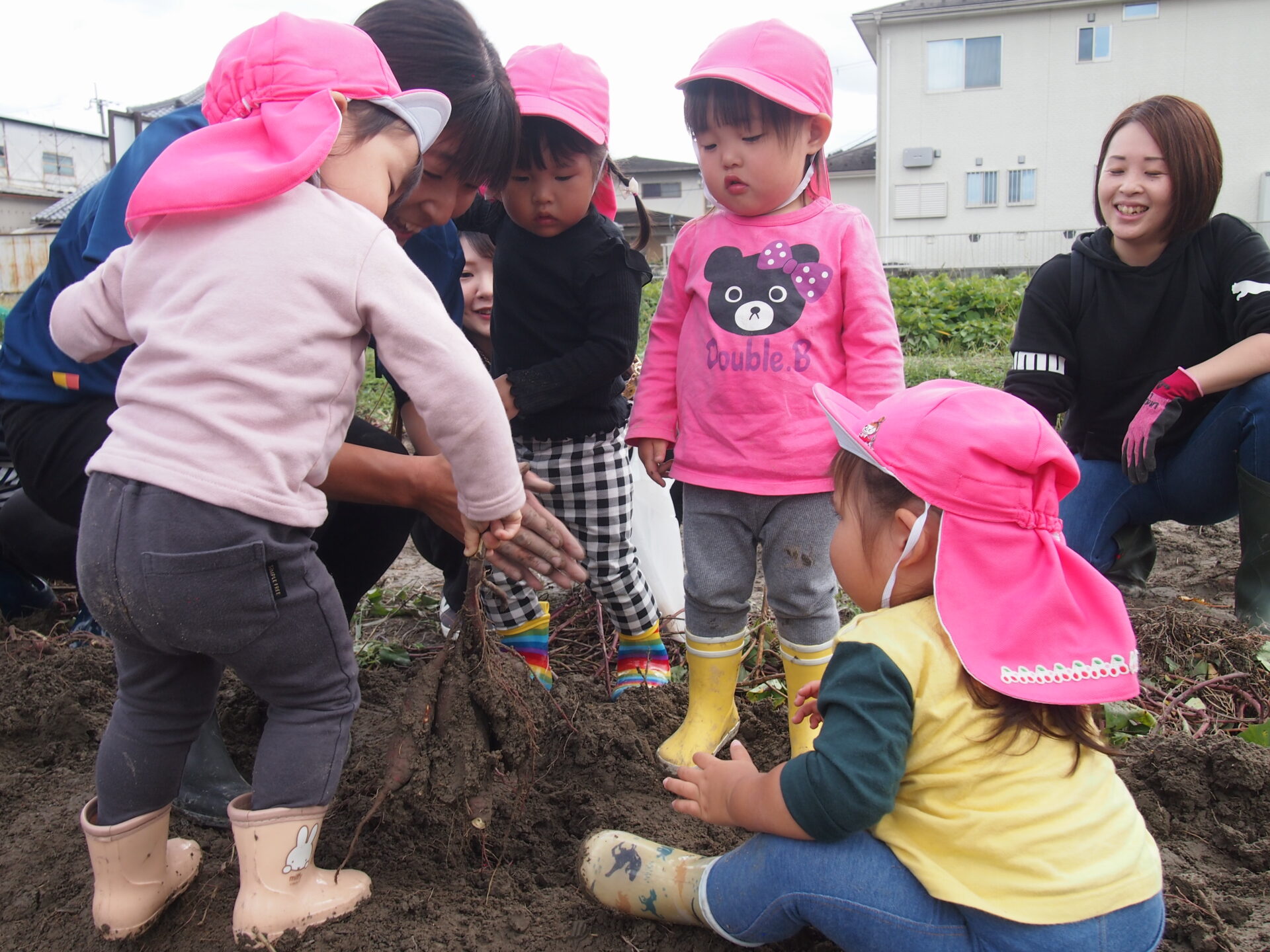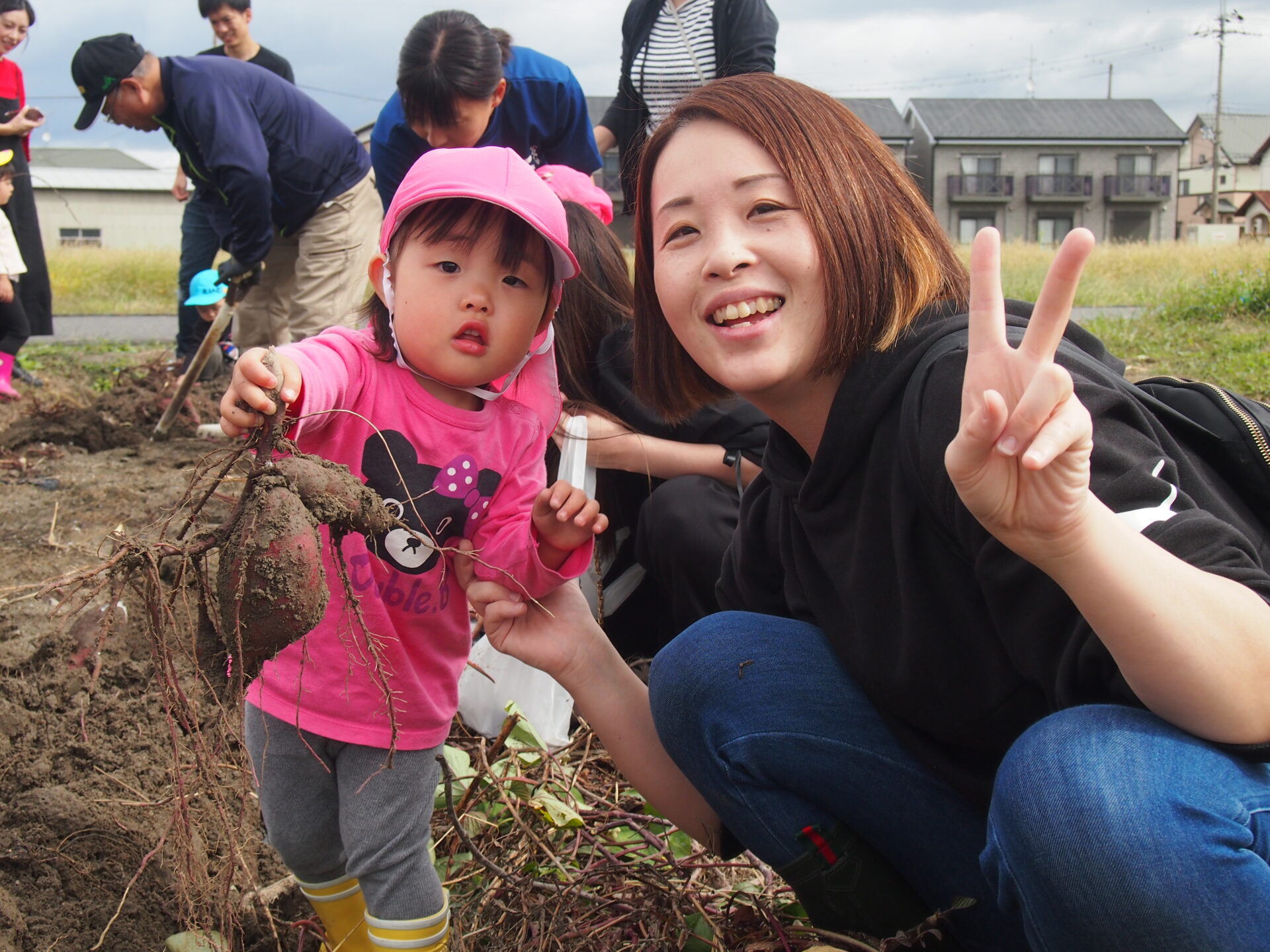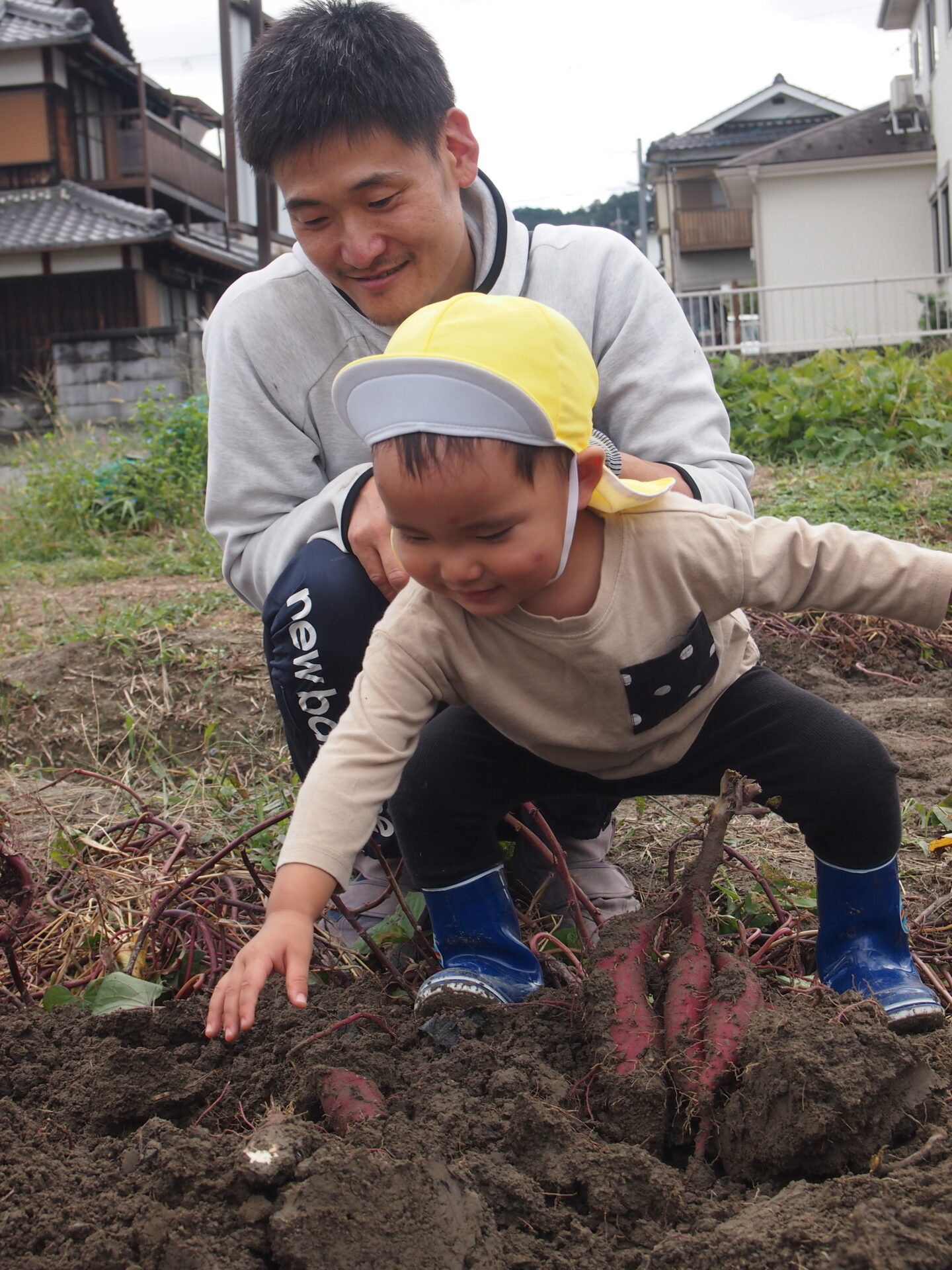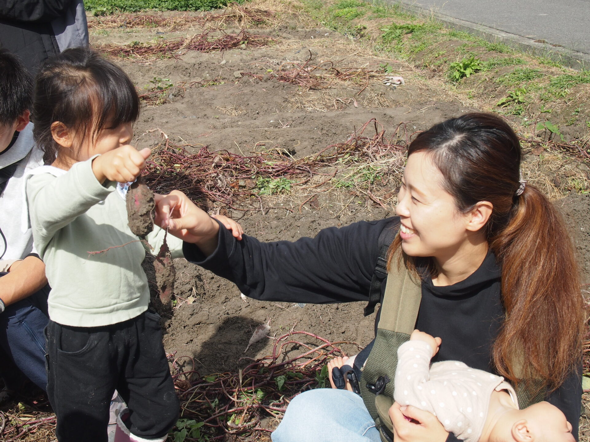 土の中から出てくるさつまいもに興味津々です(⌒∇⌒)💕