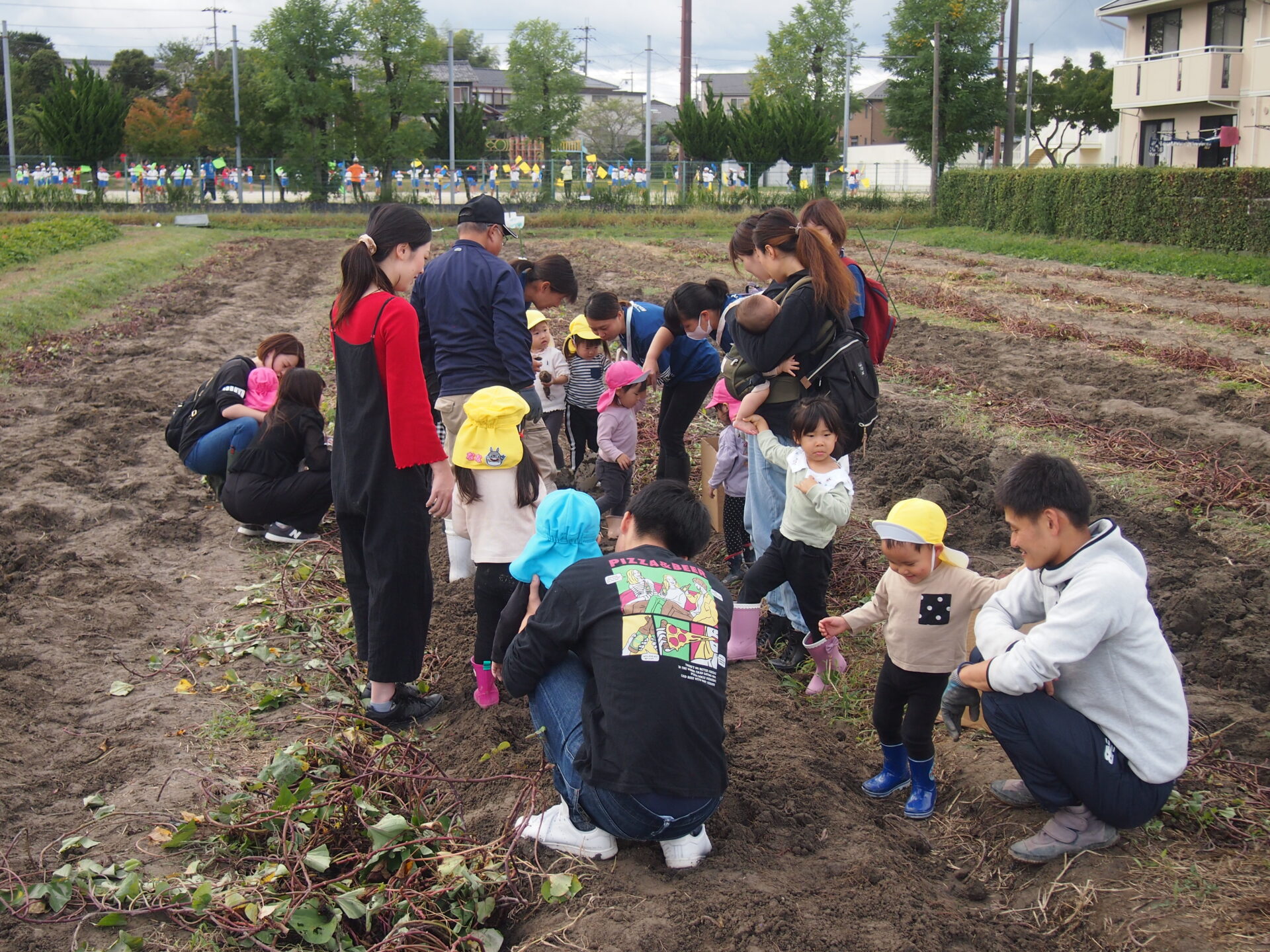 今日は、ご都合のつくお家の方も来てくださり、みんなで畑へ向かいました!