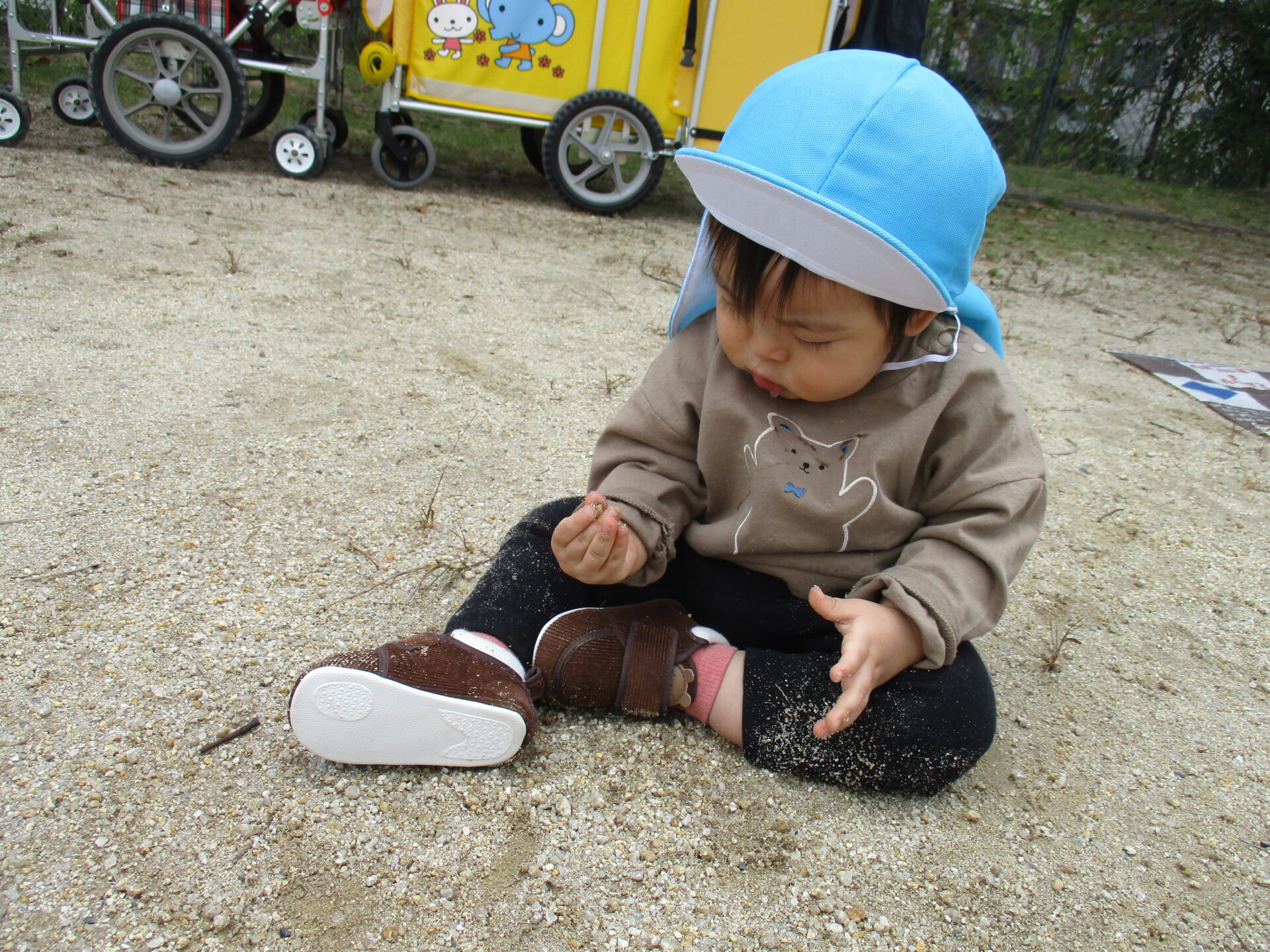 接積極的にシートの上から移動し、砂の感触を確かめます✨
