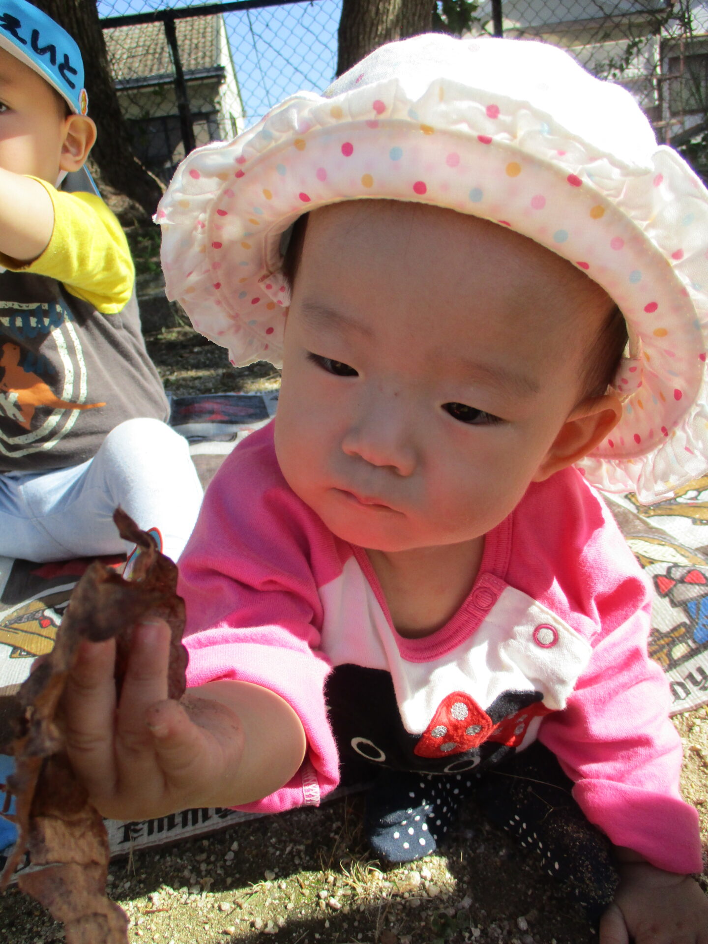 色々なものに興味が出てきて、近くに飛んできた落ち葉に、手を伸ばす姿も💕