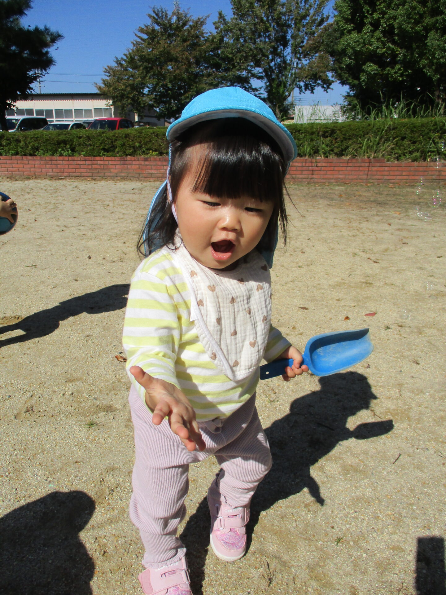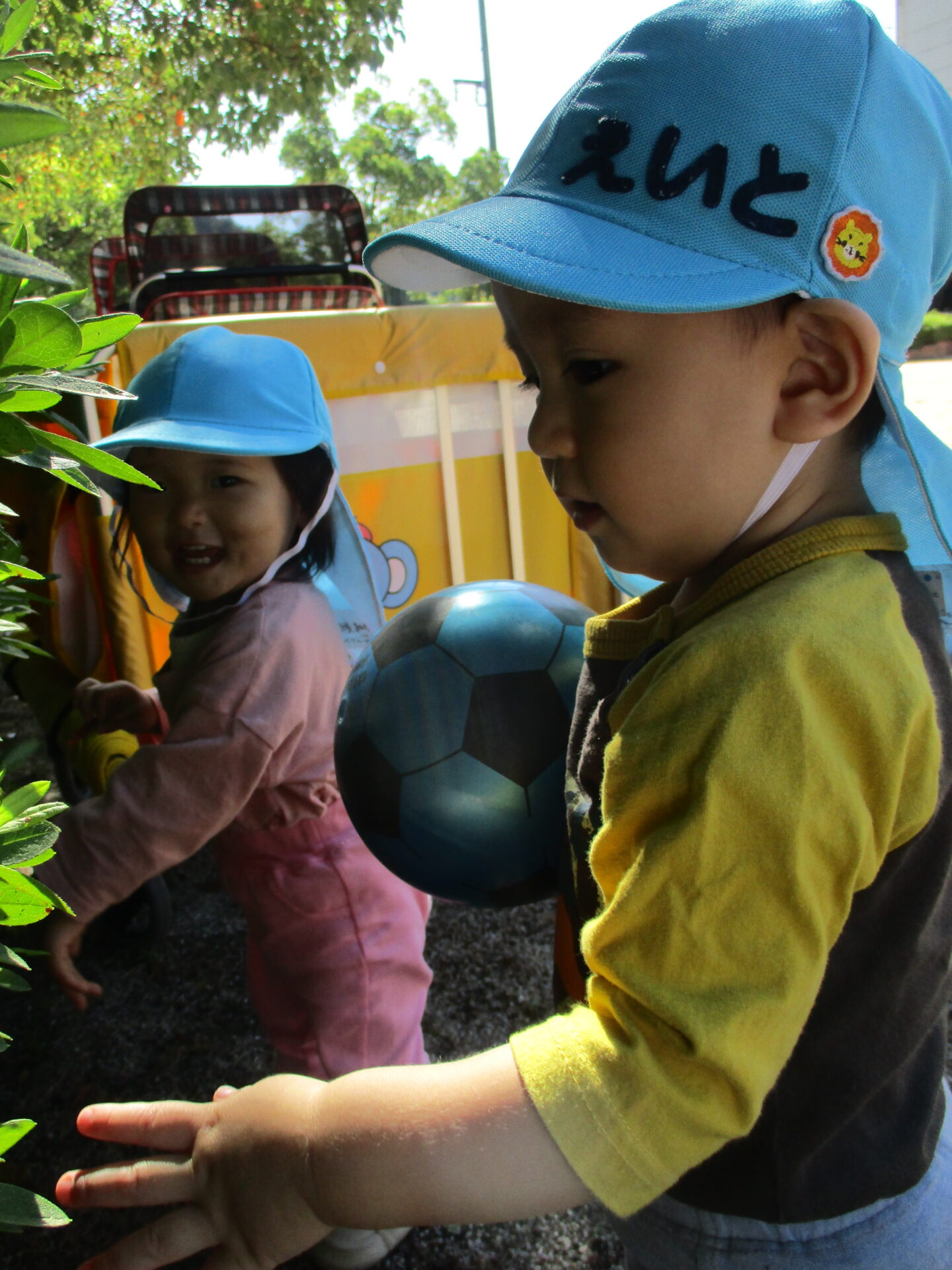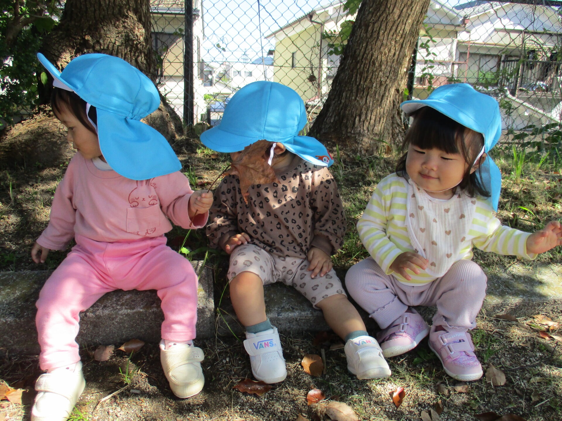 月齢によって、戸外での過ごし方は色々ですが、心地よい風や日の光を感じながら、元気いっぱい過ごすうみチームの子どもたちです!!